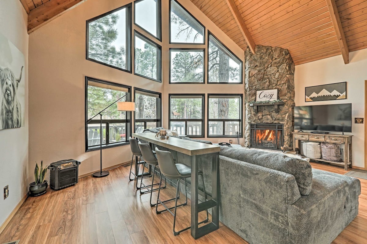 Bereid je voor op talloze avonturen in het noorden van Arizona met deze bijgewerkte, smaakvol ingerichte hut in Munds Park als je thuisbasis! Deze vakantiewoning met 3 slaapkamers en 2 badkamers beschikt over een helder verlicht interieur, een speelkamer en een groot gemeubileerd dek met een vuurplaats - perfect om 's avonds laat te genieten van s' mores. Deze woning ligt op 20 mijl van Flagstaff en 40 mijl van Sedona en ligt op een handige rijafstand van eindeloze wandelpaden, de wonderen van Red Rock Country en Arizona Snowbowl.