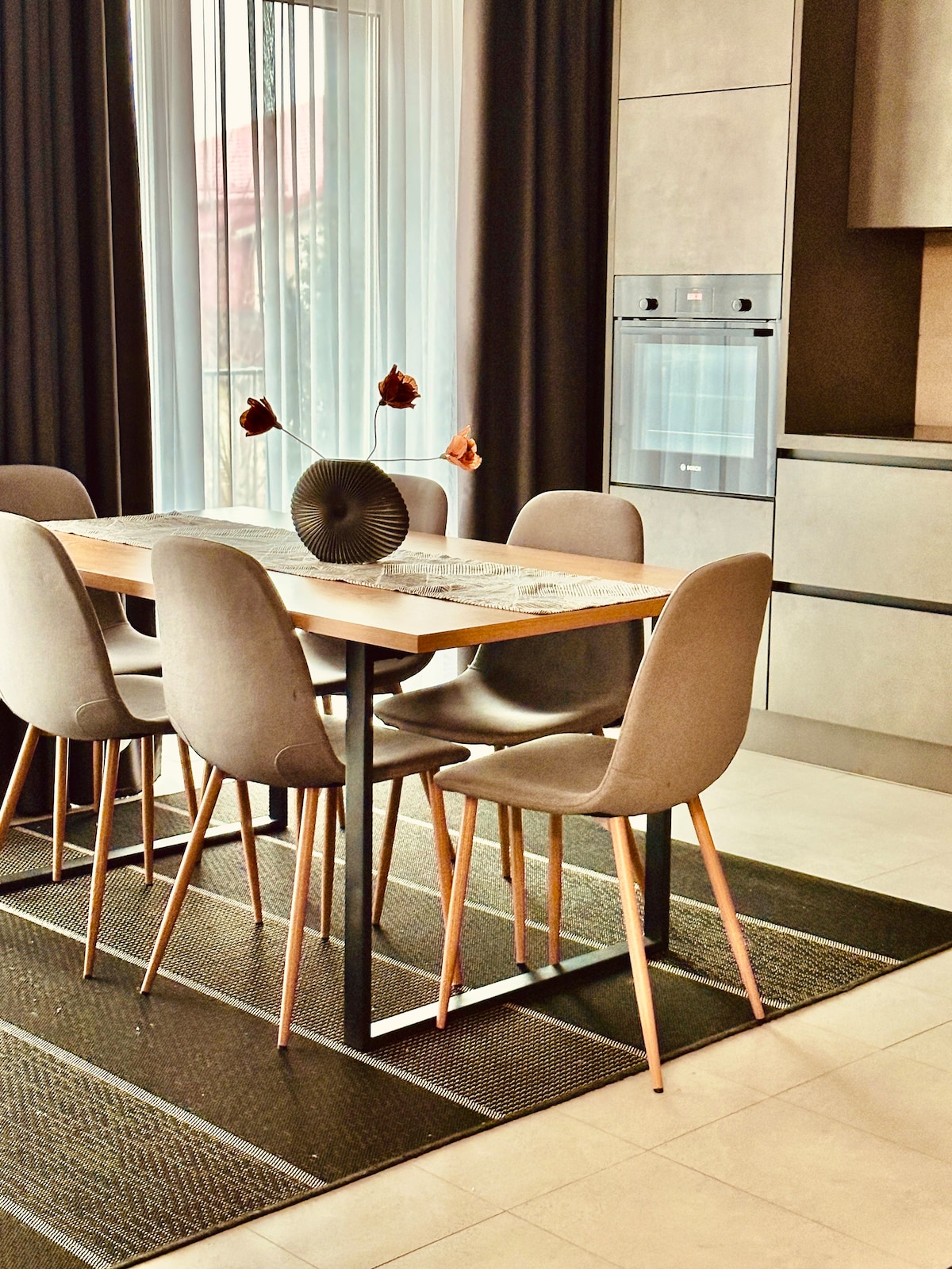 Gezellig en ontspannend appartement met een geweldig uitzicht. De plaats heeft een minimalistisch ontwerp en elegante details. Het heeft alle apparaten en apparaten die je in je huis verwacht. Met 5 minuten lopen tot de lokale winkels en 10 minuten naar het lokale busstation . Wij bieden gratis parkeergelegenheid We hebben ook airconditioning tegen een toeslag .
