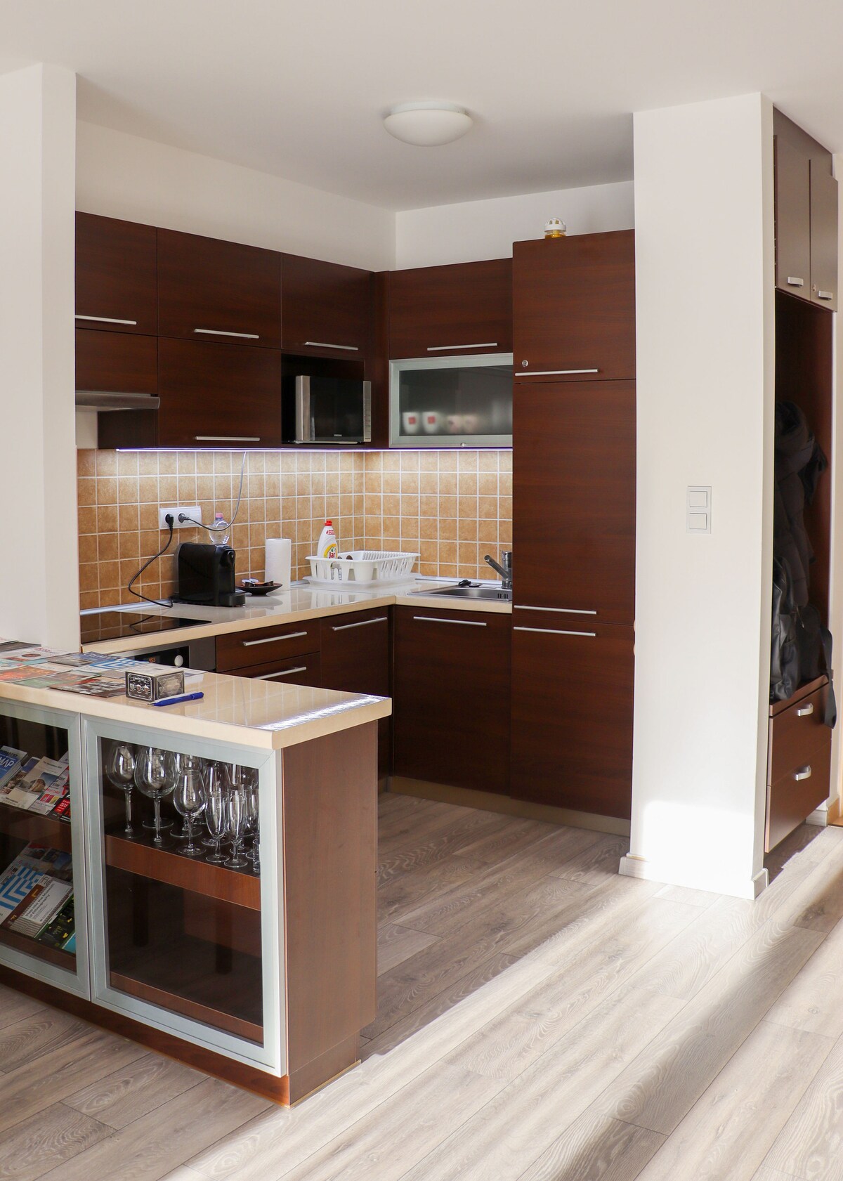 Geniet en geniet van je verblijf, omringd door originele Oost-Europese meubels die zo typisch zijn voor design dat erg populair was in het midden van de vorige eeuw. Het gebouw met zijn binnenplaats dateert uit 1914 en is gebouwd volgens de specifieke vereisten van een meubelmaker van die tijd. Het hoge plafond, de houten luiken en de houten vensterbanken tonen de schoonheid van deze periode. Zittend op het gezellige balkon, onder het genot van een glas wijn kun je jezelf onderdompelen en de sfeer van de stad voelen.