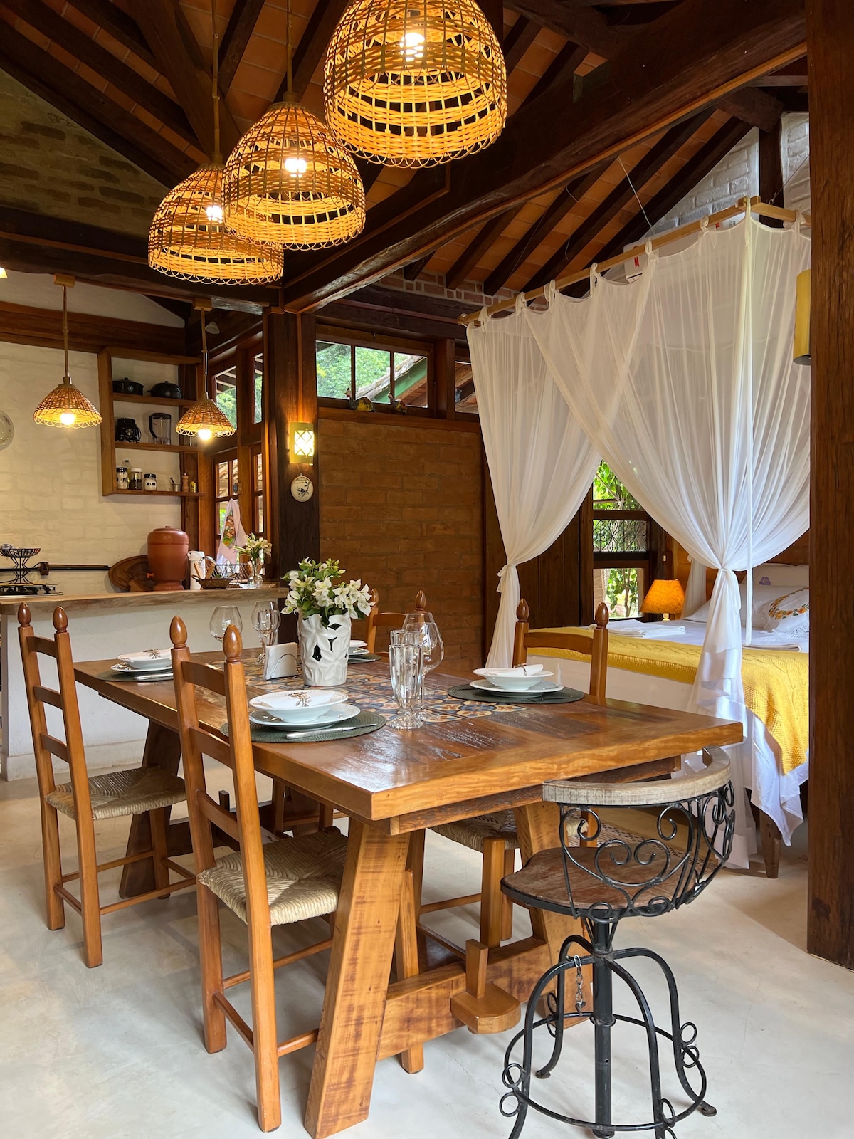 Het huis ligt in het centrum van de stad, de grootste historische site in Espírito Santo. Een landelijke sfeer, vol architectonische schoonheden die ons uitnodigen om terug in de tijd te reizen. De sfeer is comfortabel, typisch voor een bewaard oud huis, met tuin, achtertuin, hoge plafonds, originele schilderijen/fresco 's. De ligging is ideaal voor een enkele tour, begeleid of in een groep, voor een duik in de geschiedenis, cultuur en kunst van Muqui.
