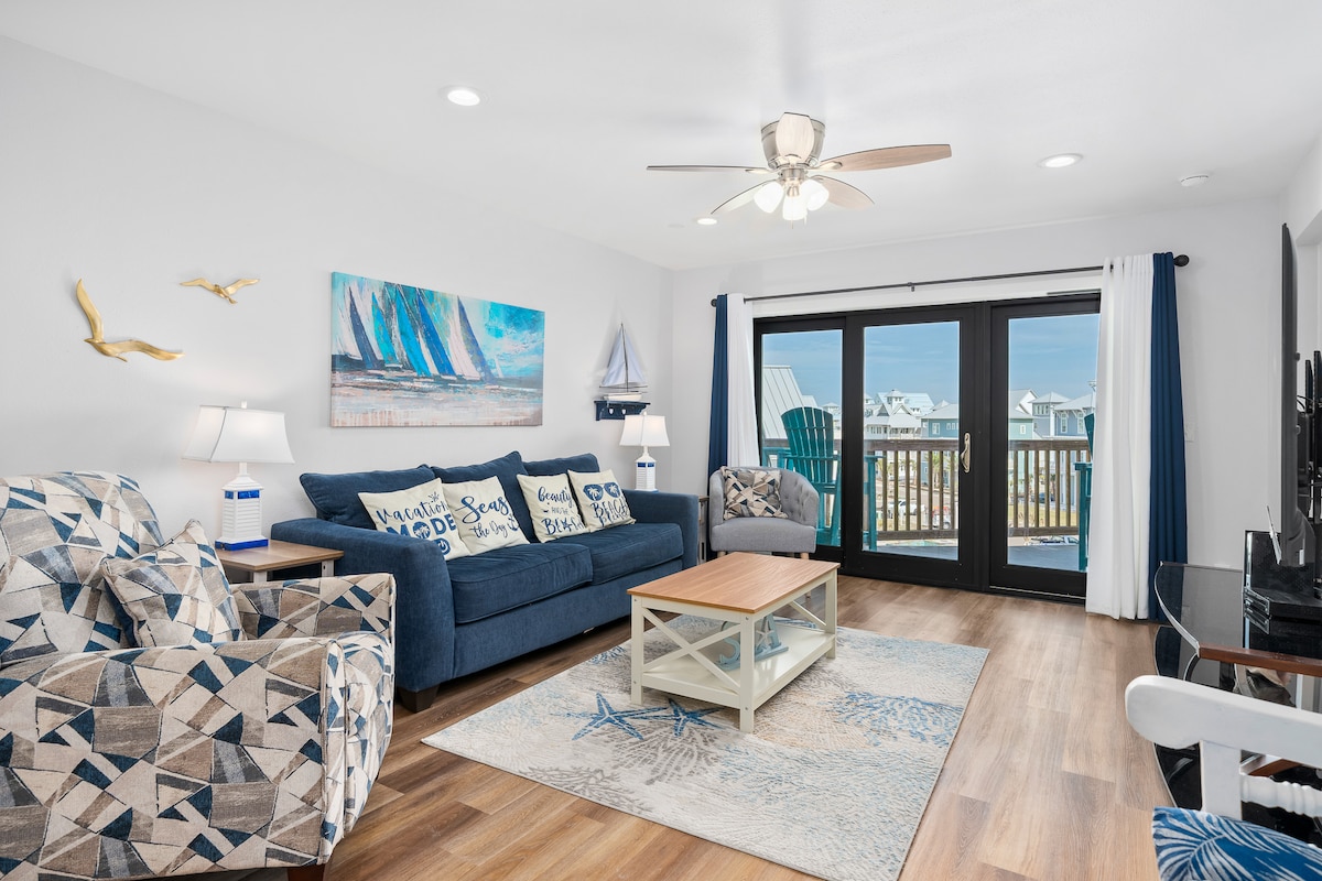 Prachtig gerenoveerd, volledig ingericht appartement met 2 slaapkamers, 2 badkamers aan het strand in Port Aransas, TX met een rustig uitzicht op de duinen vanaf de patio aan de achterkant. Ons huis ligt op een terrein van 7 hectare vol voorzieningen - 2 zwembaden, pickleballbaan, wasruimte en meer! **Houd er rekening mee dat er een City of Port Aransas-belasting van 7% is die niet door Airbnb wordt geïnd die na het reserveren wordt beoordeeld en voorafgaand aan het inchecken moet worden betaald. Gemeente Port Aransas Vergunning voor kortetermijnverhuur #217268