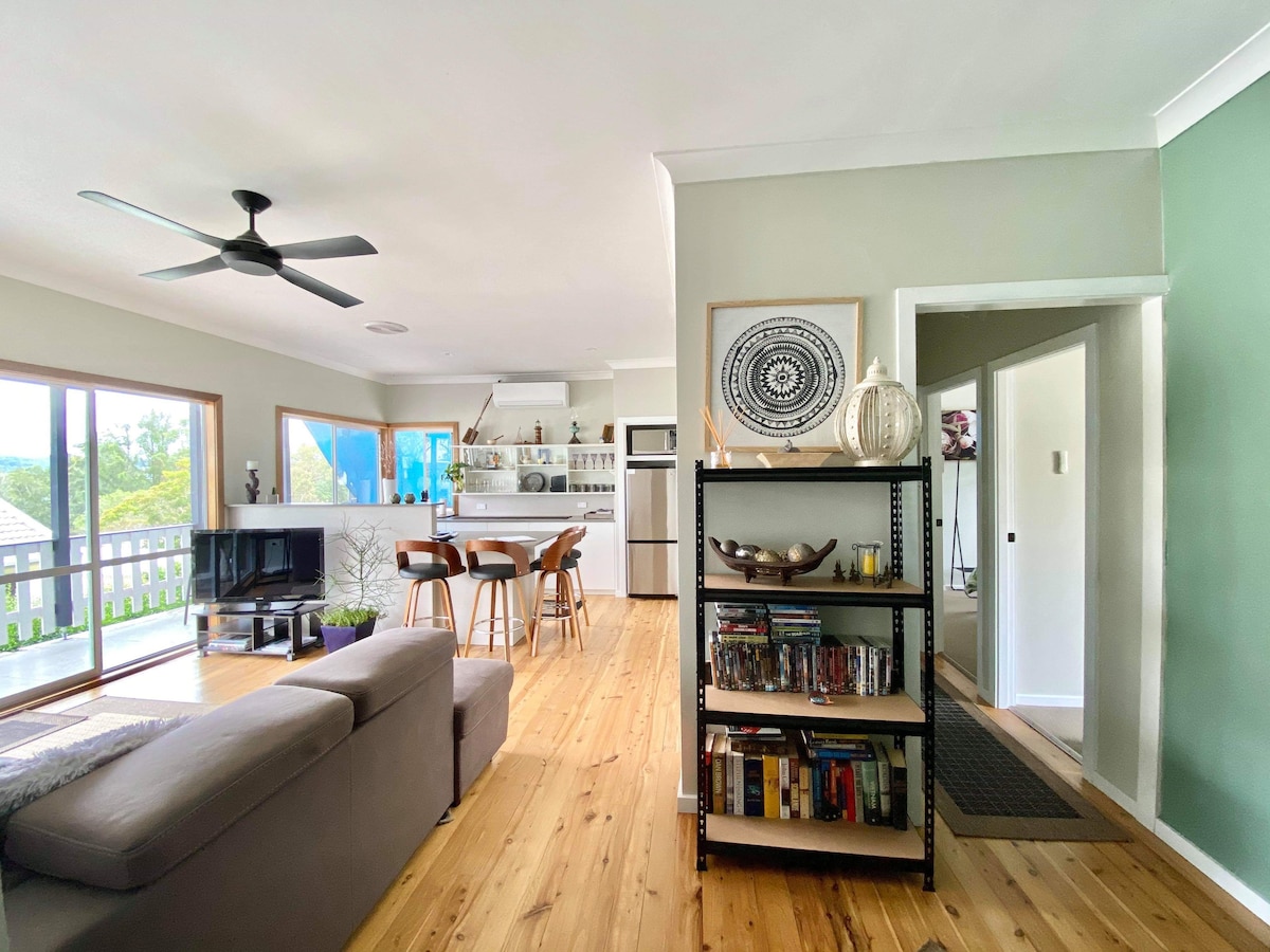 Deze gezellige aparte slaapkamer met ensuite is een smaakvolle garageconversie. Op de kamer is een kleine koelkast, een tafel en stoelen, handdoeken, een haardroger en een waterkoker met thee en koffie aanwezig. De kamer bevindt zich in een apart gebouw aan de voorzijde van onze gezinswoning, dus je hebt een eigen ingang. Het bed is een comfortabele queensize echte Japanse futon. Het is een rustige en privé locatie, met inheemse bushland aan de zijkant van en achter het huis. We zijn slechts 10 minuten van de snelweg M1.