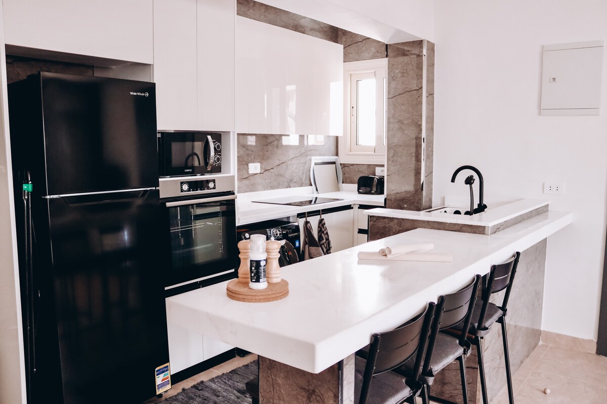 Dit gloednieuwe appartement met één slaapkamer, gelegen in het hart van Naama Bay, het centrum van Sharm Sheikh. Met gratis toegang tot het strand, op 10 minuten lopen. Uniek, eenvoudig en gezellig design, voor je perfecte vakantie. Onze gasten kunnen ook genieten van de daktuin met BBQ en zithoek omgeven door een prachtig uitzicht op de bergen en de zee.