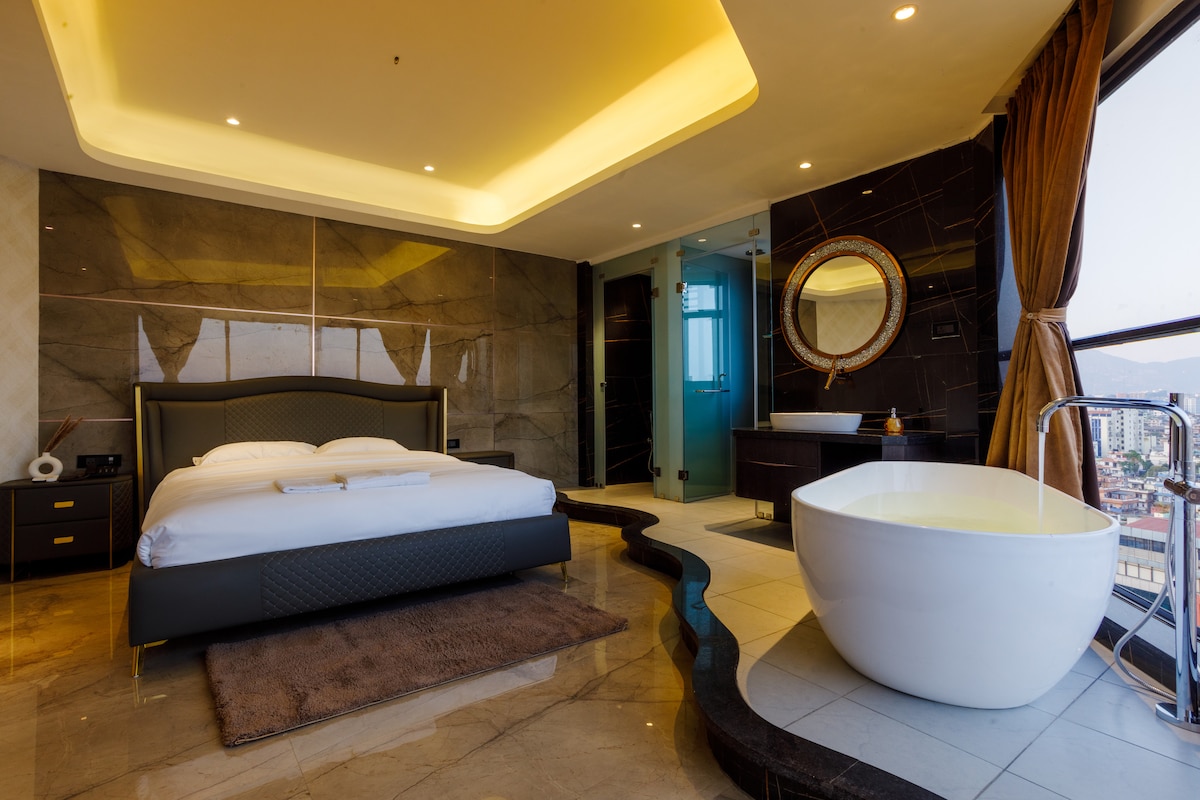 Luxe hoofdslaapkamer met badkamer in Lazimpat