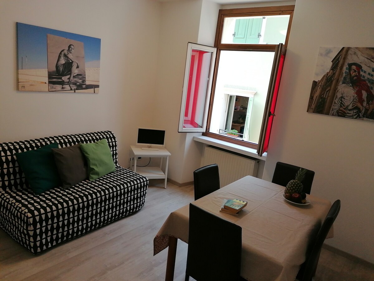 Helder, kleurrijk, comfortabel gelegen in het historisch centrum van Torbole, op korte loopafstand van het meer. Meer, stranden, scholen, verhuur en alle voorzieningen op loopafstand, supermarkt, bank, restaurants. Beddengoed en handdoeken zijn inbegrepen. Gratis wifi. Het appartement bestaat uit een ruime woonkamer met een comfortabele slaapbank voor twee personen, een kitchenette compleet met alle gebruiksvoorwerpen, een grote slaapkamer met tweepersoonsbed en een badkamer met een douche en een wasmachine. Je kunt geen fietsen meenemen in het appartement.