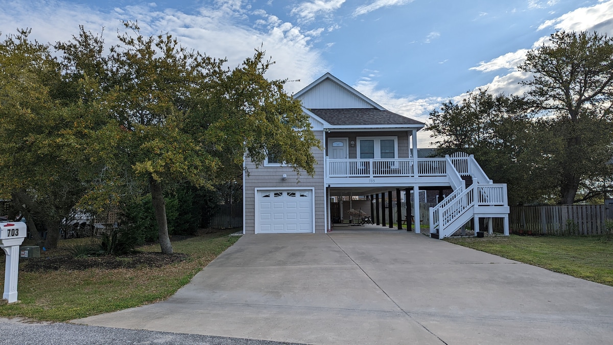 Welkom in je ontspannende toevluchtsoord aan de kust in Kitty Hawk. Deze ruime, moderne studio biedt een comfortabel thuis-weg-van-huis-gevoel met hoge plafonds, een eigen entree en een rustige omgeving. Dit rustige toevluchtsoord is gelegen op de tweede verdieping (geen lift) en perfect voor stellen of soloreizigers die op zoek zijn naar ontspanning. Geniet van een prachtig uitzicht op de zonsondergang. Ga de achtertuin in om te ontspannen in de hottub (beschikbaar wanneer deze niet door andere gasten wordt gebruikt), of leun gewoon achterover en geniet van het prachtige landschap.