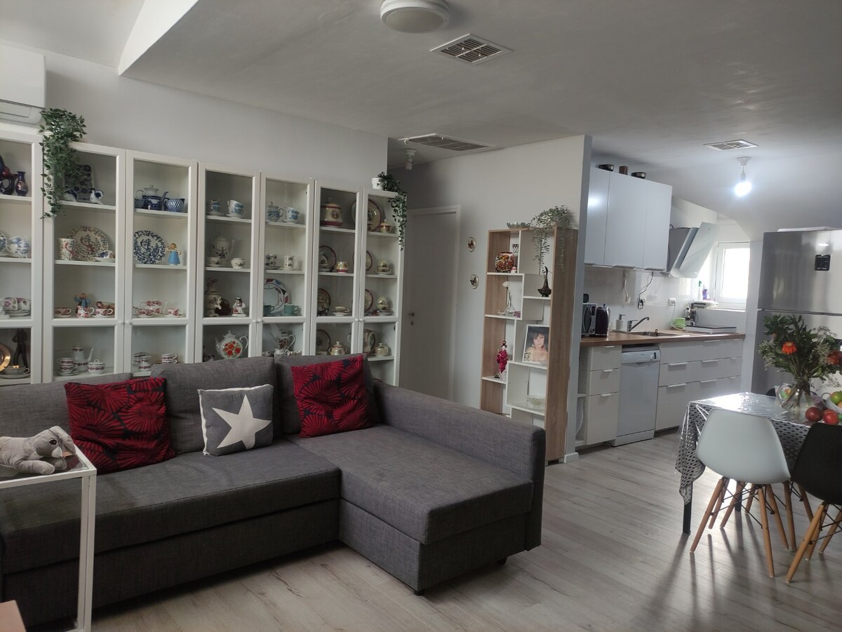Mooi comfortabel appartement met 2 slaapkamers op 20 minuten rijden van het strand van Haifa, op 5 minuten rijden van winkelcentra en essentiële faciliteiten. 5 minuten rijden van Technion, 7 minuten rijden van Haifa University.