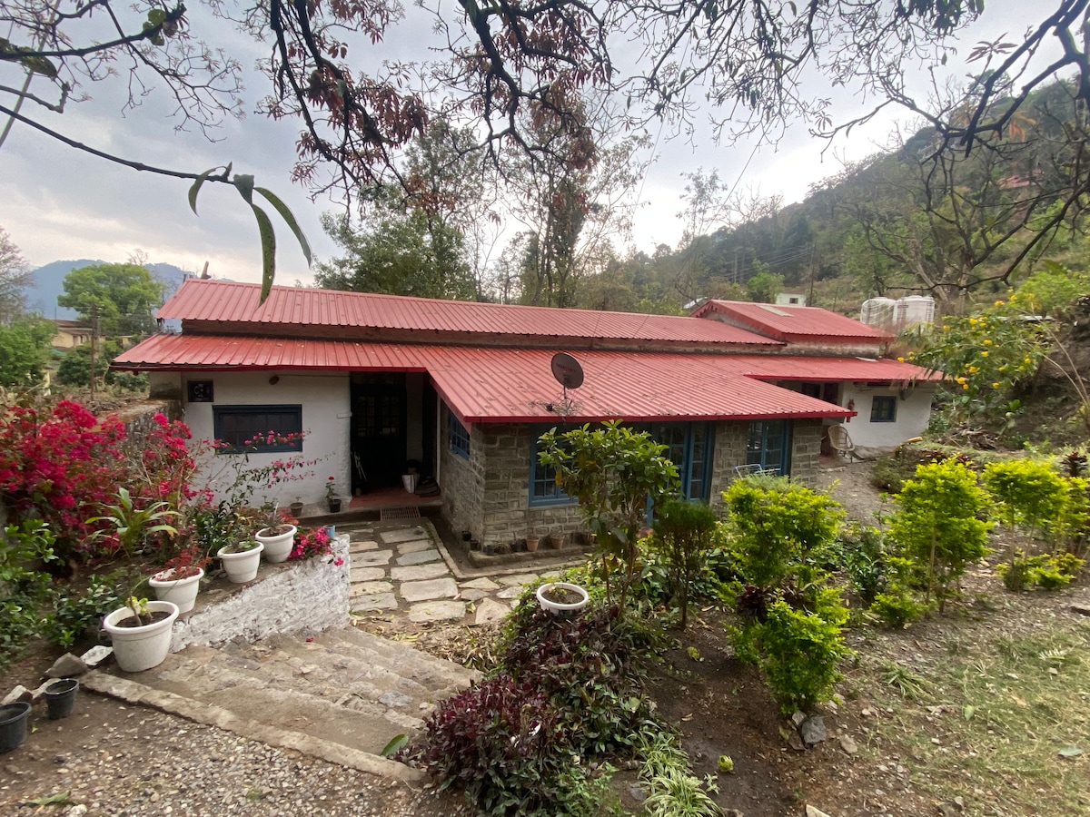 In de buurt van Nainital, een 2 kamer suite in een erfgoed Britse bungalow die smaakvol is omgebouwd tot een verblijf in huis. Gelegen op een zeer rustige locatie weg van de massa. Als je zin hebt in een ontspannen vakantie in een eigen omheinde bungalow met grote open tuinen, dan is dit een ideale locatie. Huisdiervriendelijk. We hebben een kok/ conciërge team om ervoor te zorgen dat je verblijf comfortabel is. Sterke wifi aanwezig. Eten is tegen kostprijs. Er geldt een nominale vergoeding voor de personeelsdiensten die je bij ons kunt navragen.