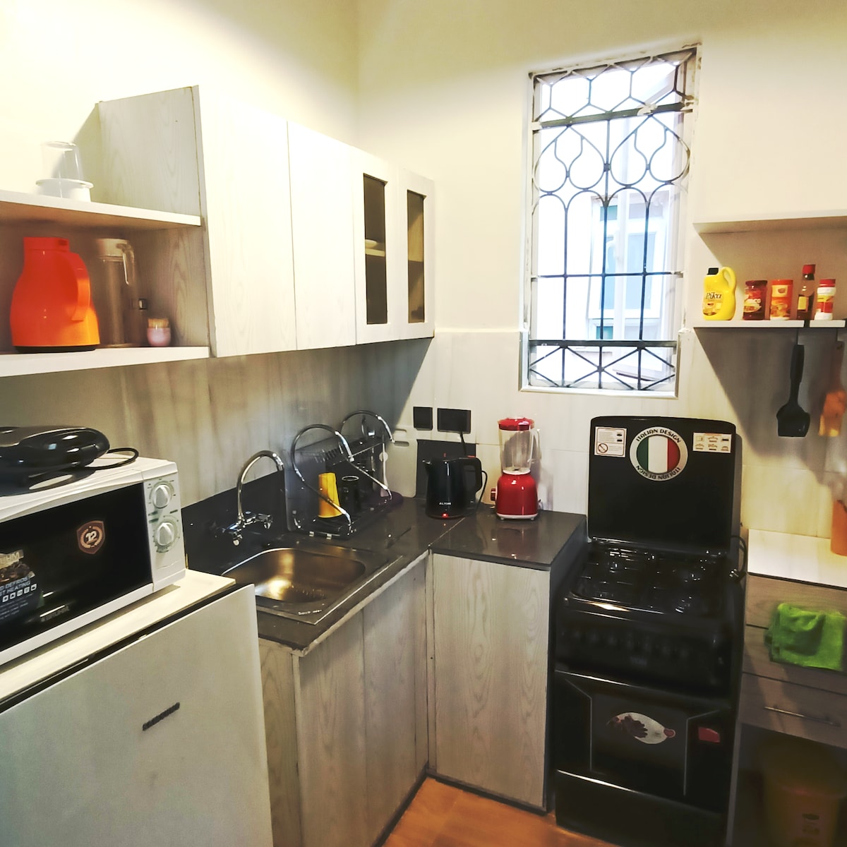 Dit studio-appartement is gelegen in een Kileleshwa, een van de handigste locaties in Nairobi. Het ligt in een kosmopolitisch gebied, centraal gelegen tussen de knooppunten Westlands, Kilimani, Lavington en het CBD. Het gebied is voldoende veilig, met een politiebureau op steenworp afstand. Het complex heeft een goede beveiliging die goed gepatrouilleerd is met CCTV-camera 's. Op slechts 2 minuten lopen van de plek is de goed gevulde en 24/7 supermarkt die al je behoeften zou moeten hebben