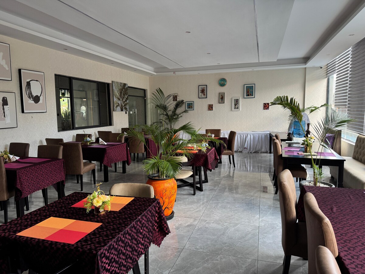 Dit elegante en smaakvol ingerichte appartement bevindt zich op de vierde verdieping en biedt een prachtig uitzicht over de omgeving mogelijk. Met 24-uursbeveiliging is de omheinde gemeenschap gelegen in het Financial District van Nairobi, heeft gemakkelijke toegang tot Downtown, Kenyatta & Nairobi Ziekenhuizen, aar, Nairobi Club, National Library, banken, winkelcentra. Het ligt in de buurt van de Israëlische ambassade en Fairview Hotel. Geweldig voor zaken- en vakantieverblijven. Onze ruimte wordt gedesinfecteerd en ontsmet.