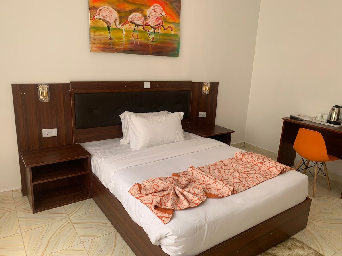Welcome to our Standard Room — ideal for solo travelers, couples, and business guests looking for a simple and clean place to stay. Enjoy a double bed, fast Wi-Fi, a private bathroom, and daily housekeeping. Located at Ole Vasha Suites, guests enjoy convenient access to transport, eateries, and on-site support from our 24/7 front desk.