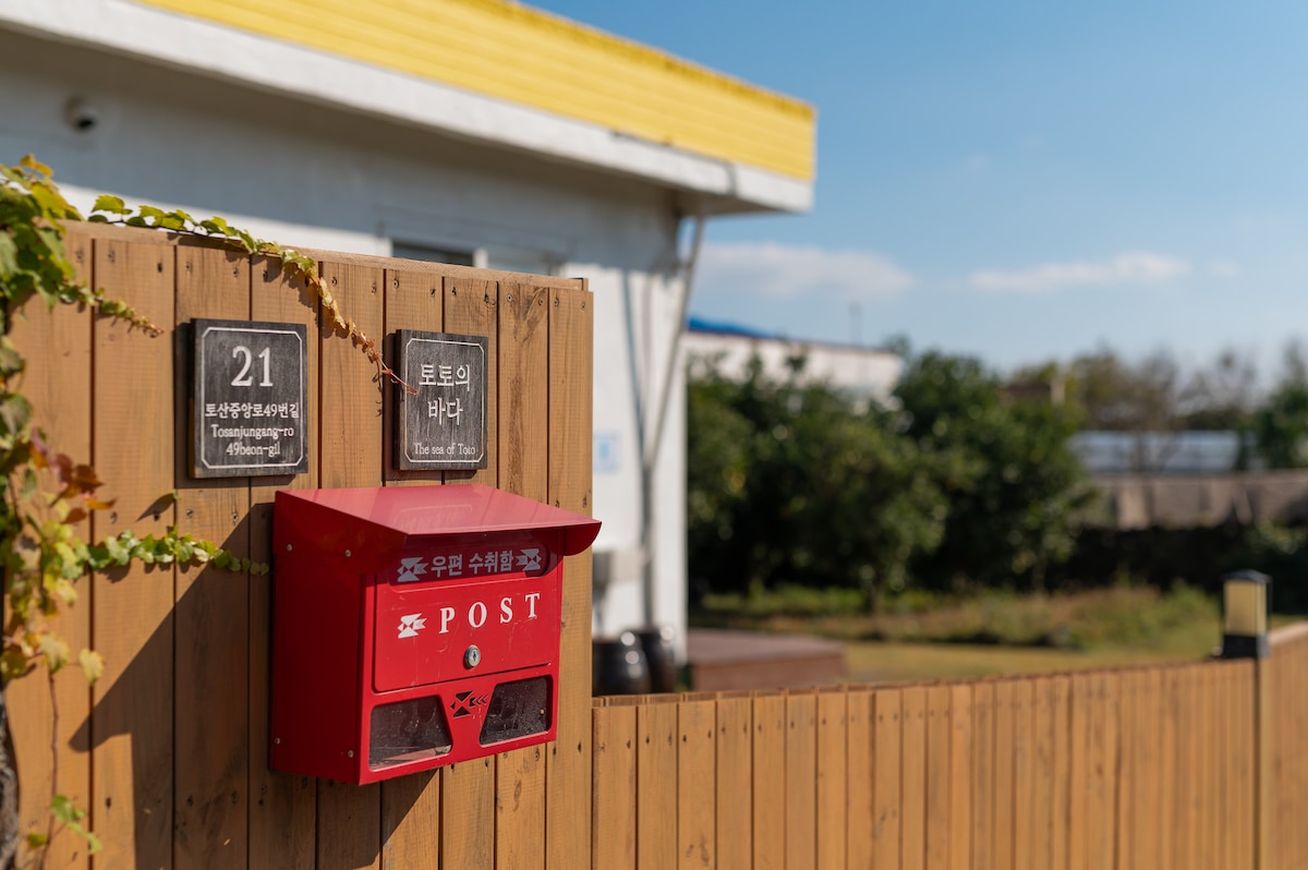 Pyojeon's privé-emotionele accommodatie. Het huis is 23 pyeong en de tuin is ongeveer 300 pyeong. Warmwaterbron beschikbaar in alle seizoenen. Je kunt binnenkomen vanaf 12 jaar of ouder.(Neem contact met ons op per bericht jonger dan 12 jaar/maximaal 3 personen kunnen binnenkomen) [📌Het basisbed is voor 2 personen (queensize bed, futon). Als er drie personen zijn of twee personen die apart slapen, neem dan contact met ons op voor️ extra instellingen. 3-5 minuten lopen naar Pyoseonhae Beach. (Salt Block Beach 3 minuten met de auto/surfen) Welkomstmaaltijd verstrekt (cup noedels) - 1 keer (op de dag van opname) (Wat wordt verstrekt kan periodiek variëren.) Het is lastig om te koken. (Er is een 1 holes inductiekookplaat, maar het is mogelijk om een soep te hebben die niet naar ramen ruikt. Je kunt geen voedsel koken met sterke geuren zoals het grillen van vlees en maeuntang) Je kunt in ongeveer 5 minuten met de auto naar gemaksvoorzieningen zoals restaurants en markten in de buurt. Attracties in de buurt: Pyoseon Beach (5 minuten lopen/1 minuut met de auto), Seongsan Ilchulbong Peak (20 minuten), Jeju Folk Village (3 minuten) en Jeju Herb Garden (6 minuten) zijn beschikbaar. Je kunt ook binnen 15 minuten naar Taerabioreum gaan.