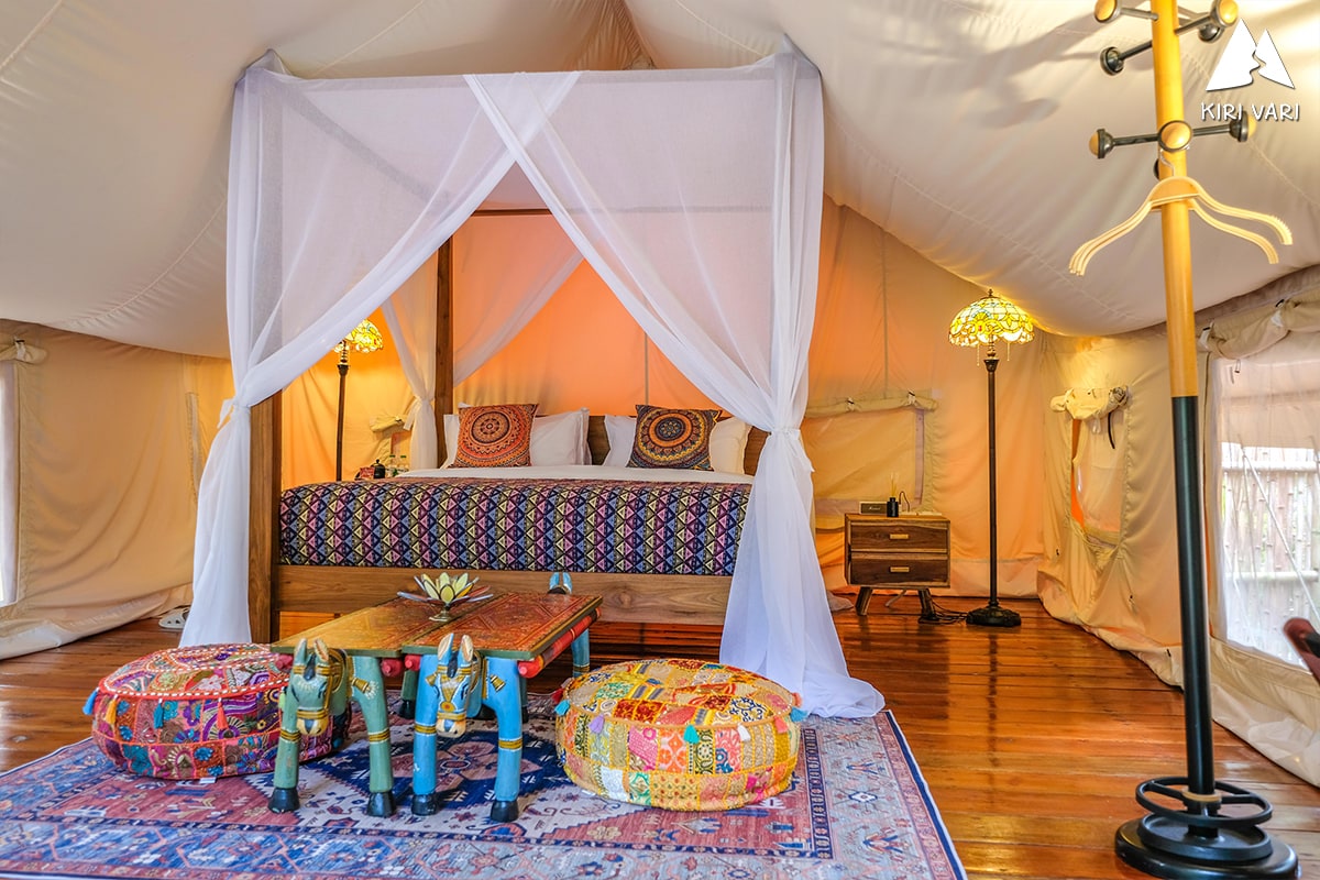 Luxury Tented Camp Wolf . เต็นท์นี้ สีโทนร้อนแรงขึ้นนิดกับห้องน้ำสีน้ำเงินคู่กับโคมไฟโมเสกของทิฟฟานี ในส่วนเต็นท์และห้องน้ำ เฟอร์นิเจอร์ภายในเต็นท์นี้เกือบทั้งหมดส่งตรงมาจากอินเดีย และตุรกี เพราะเราอยากให้เป็นแนวเตอร์กิซ ที่มีความจัดจ้านของสีสัน ห้องนี้ถ่ายรูปออกมาสวย สีสันสดใสมาก ดังนั้นเต็นท์นี้เราเลยตั้งชื่อว่า Wolf เพราะได้แรงบันดาลใจมาจากเจ้าหมาป่าสีเงิน สัตว์ประจำชาติของตุรกีนะจ้าว + Free Mini Bar + Free อาหารเช้า + Free Afternoon Tea Set + Free บริการ ตีฟองอ่างนํ้า วันละ 1 ครั้ง