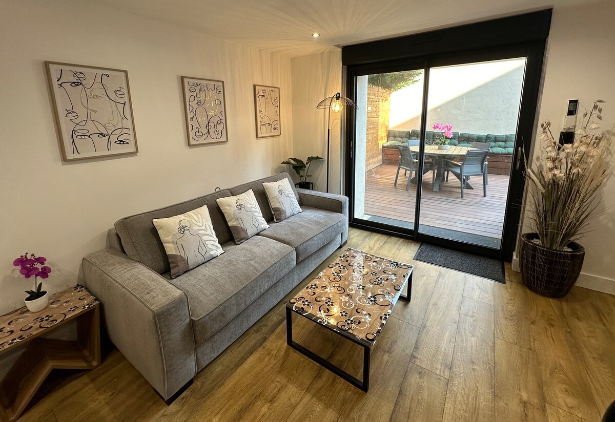 Appartement met karakter, op 10 minuten lopen van het treinstation, het wordt bediend door tramlijn A. Deze accommodatie biedt 2 comfortabele slaapkamers, een woonkamer met een slaapbank die kan worden omgebouwd tot een tweepersoonsbed, een uitgeruste keuken (wasmachine, droger, koffiezetapparaat, blender, enz.) en glasvezel voor snel internet. Tv met kanalen en Netflix en Prime Video inbegrepen. Ideaal om de stad te verkennen in een gezellige en handige omgeving.