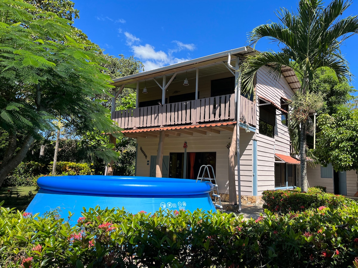 AAN HET STRAND! Overal airco. 2 slaapkamers + zwembad! BELANGRIJKE OPMERKING: lopende bouw bij buren tot april! 2025 Prijzen tonen 25% korting voor het ongemak! Leukste kleine strandhuis op een prachtig palmboomgazon, strand op DE EERSTE RIJ Playa San Miguel. Prachtig tropisch uitzicht vanuit elk raam en dek. Huis 110m2 (1200ft), 2 verdiepingen. Beneden woonkamer, keuken, toilet. Boven 1 slaapkamer houten vloeren, kingsize bed, bureau, kast + badkamer. Aan de zijkant van het hoofdhuis is de 2e slaapkamer, queensize bed, bureau + volledig bad.