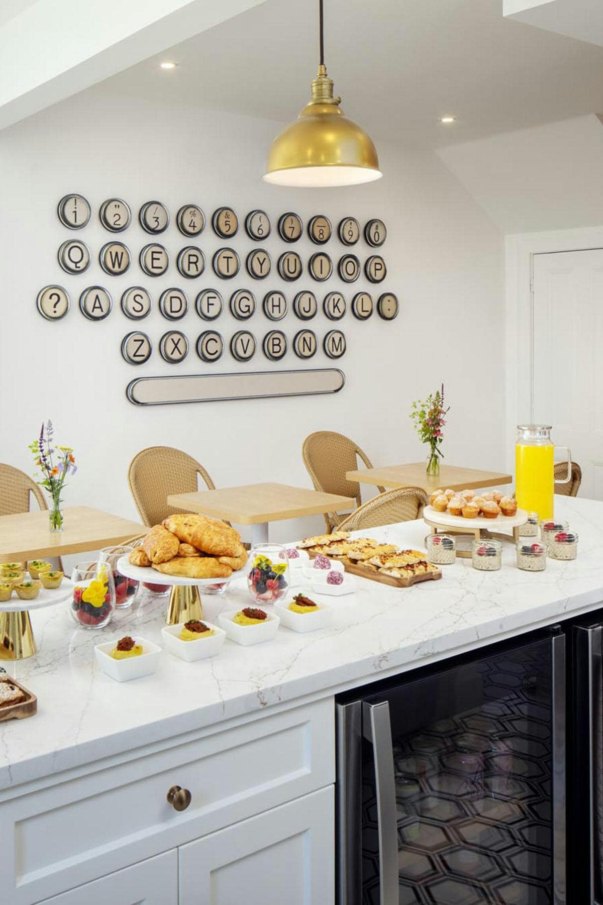 Continentaal ontbijt wordt geserveerd in de gastenkeuken