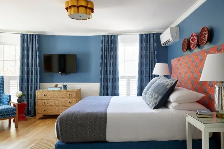 De drie (3) King Deluxe kamers in ons boetiekhotel in Edgartown zijn geschikt voor twee gasten in totaal. Variërend van 245-280 vierkante voet elk, bevindt zich op de tweede verdieping grenzend aan The Richard en King Suites (ideaal voor groepen die samen reizen). Elke kamer biedt een zacht kingsize bed en elk zijn eigen unieke stijl en functie. Al deze kamers bieden ook een 43-inch led-smart-tv, een kluis, verduisteringsgordijnen en USB-aansluitingen, naast individueel bedienbare airconditioning en gratis draadloos internet.