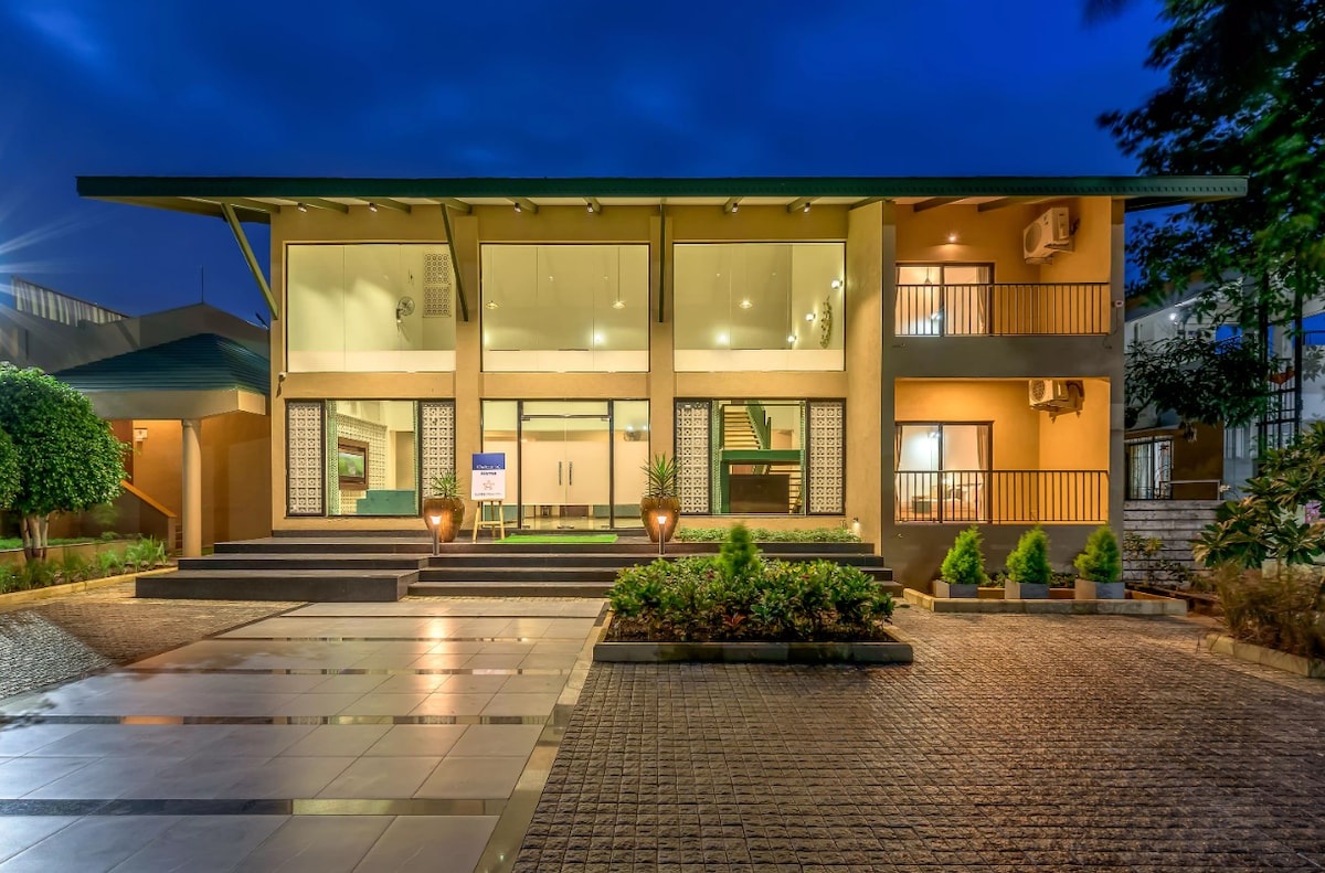 Ervaar verfijnde luxe in deze moderne villa met privézwembad, waar eigentijdse architectuur naadloos samensmelt met de natuur. Deze exclusieve 3BHK in de buurt van Igatpuri 50 minuten van Nashik en 3,5 uur van Mumbai biedt comfortabel plaats aan 6–9 gasten. Geniet van een privézwembad, binnen- en buitenspellen, een amfitheater voor filmavonden, een volledig uitgeruste keuken, een chef-kok op het terrein (extra) en een huisdiervriendelijke opstelling, perfect voor familie-uitjes en vieringen.