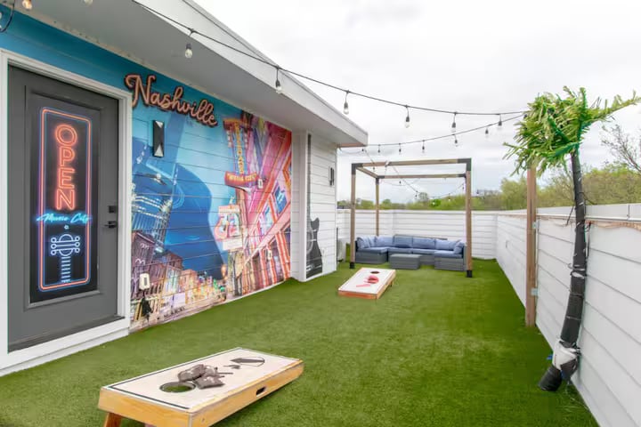 Welkom bij The Gambler, georganiseerd door Hallson Hospitality Co. Dit stijlvolle toevluchtsoord in Nashville combineert industrieel design met landelijke charme, geïnspireerd op het iconische nummer van Kenny Rogers. Perfect voor vrijgezellenfeesten, gezinsuitjes of retraites voor koppels, biedt The Gambler een ruime indeling met voldoende voorzieningen. Geniet van een volledig uitgeruste keuken, een grill op het dak, een pooltafel, jeu de boules en een dakterras voor cocktails. Ideaal voor het creëren van onvergetelijke herinneringen met vrienden en geliefden.