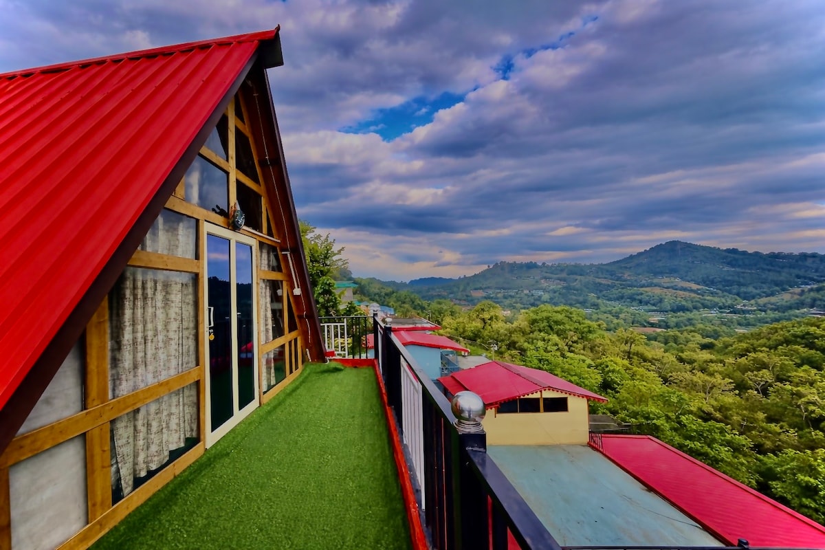 Ontsnap naar sereniteit: prachtige A-frame villa aan het Bhimtal-meer Stel je voor dat je wakker wordt met een adembenemend uitzicht op het Bhimtal-meer, omgeven door de rust van de natuur. Inside Your Haven: • Ruime slaapkamers: Twee ruime slaapkamers met elk een eigen badkamer, bieden de perfecte mix van comfort en privacy. • Moderne voorzieningen: een volledig uitgeruste keuken en open woon- en eetruimte combineren naadloos binnen- en buitenruimtes, perfect voor ontspanning en entertainment.