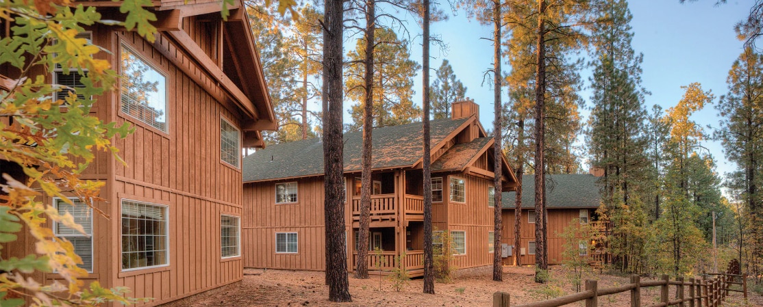 Hidden in the captivating forest, the log-sided mountain homes at PVC at The Roundhouse Resort feature spacious fully-equipped accommodations. After a day of Arizona adventure, the rustic lodge offers the ideal retreat with an indoor heated pool, hot tub, fitness center and many games and activities