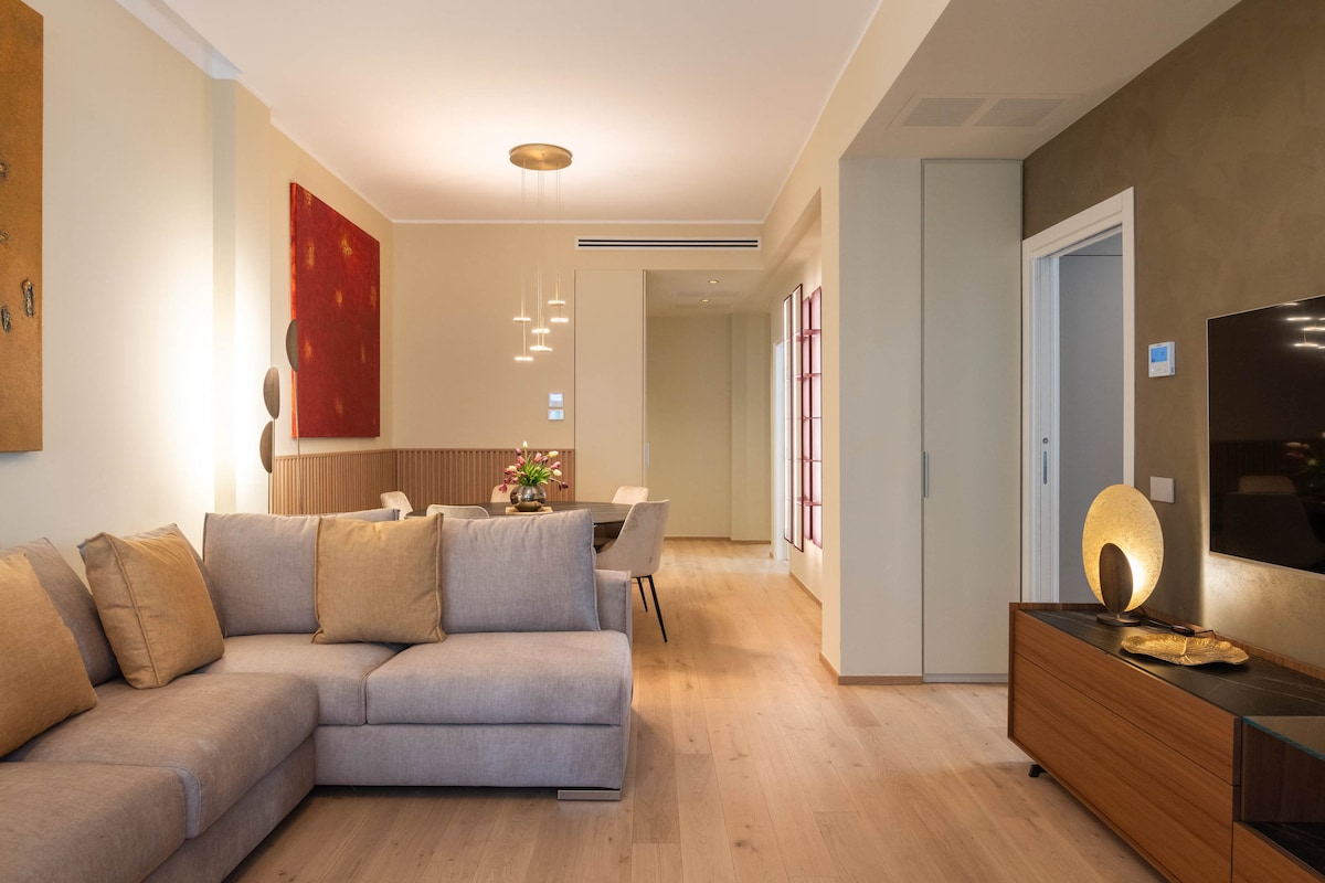 Een elegante accommodatie in het hart van Porta Venezia, versterkt door een ruim privéterras, perfect voor ontspannende momenten. Het interieur combineert een eigentijdse stijl met een industrieel karakter: zwarte stalen ramen, warme materialen en zachte verlichting zorgen voor een verfijnde en gastvrije sfeer. Rustig en privé, maar toch op een steenworp afstand van het bruisende hart van Milaan, omringd door restaurants, boetieks en de metro – de perfecte omgeving om de stad in stijl en comfort te beleven.