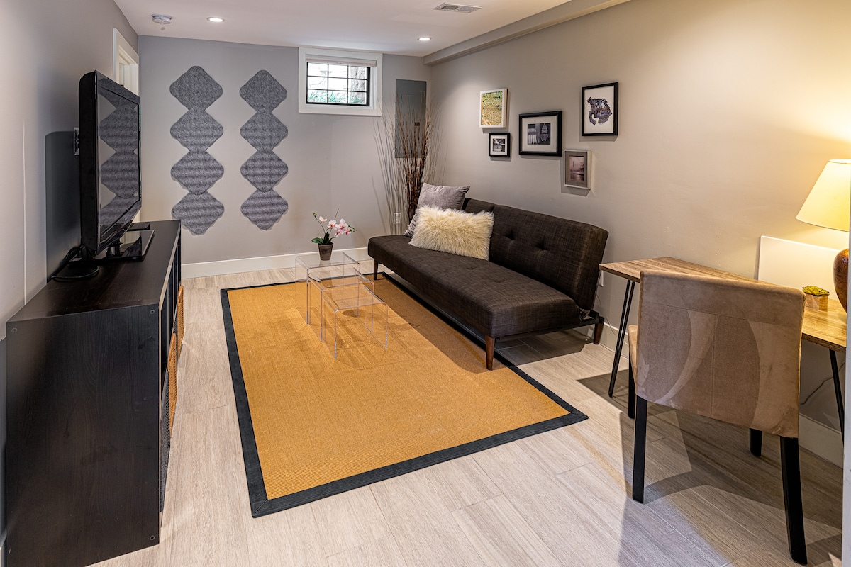 Stijlvolle en comfortabele kelder suite in een historische, gezinsvriendelijke Capitol Hill buurt. Ontworpen voor reizigers en ideaal voor langere verblijven, biedt het het comfort van thuis met moderne voorzieningen en klassieke DC-charme. Snelle wifi, werkruimte en kitchenette maken het ideaal voor werken op afstand of stages. Op loopafstand van de metro, het Amerikaanse Capitool, het Hooggerechtshof, de Eastern Market, supermarkt en Nationals Park.