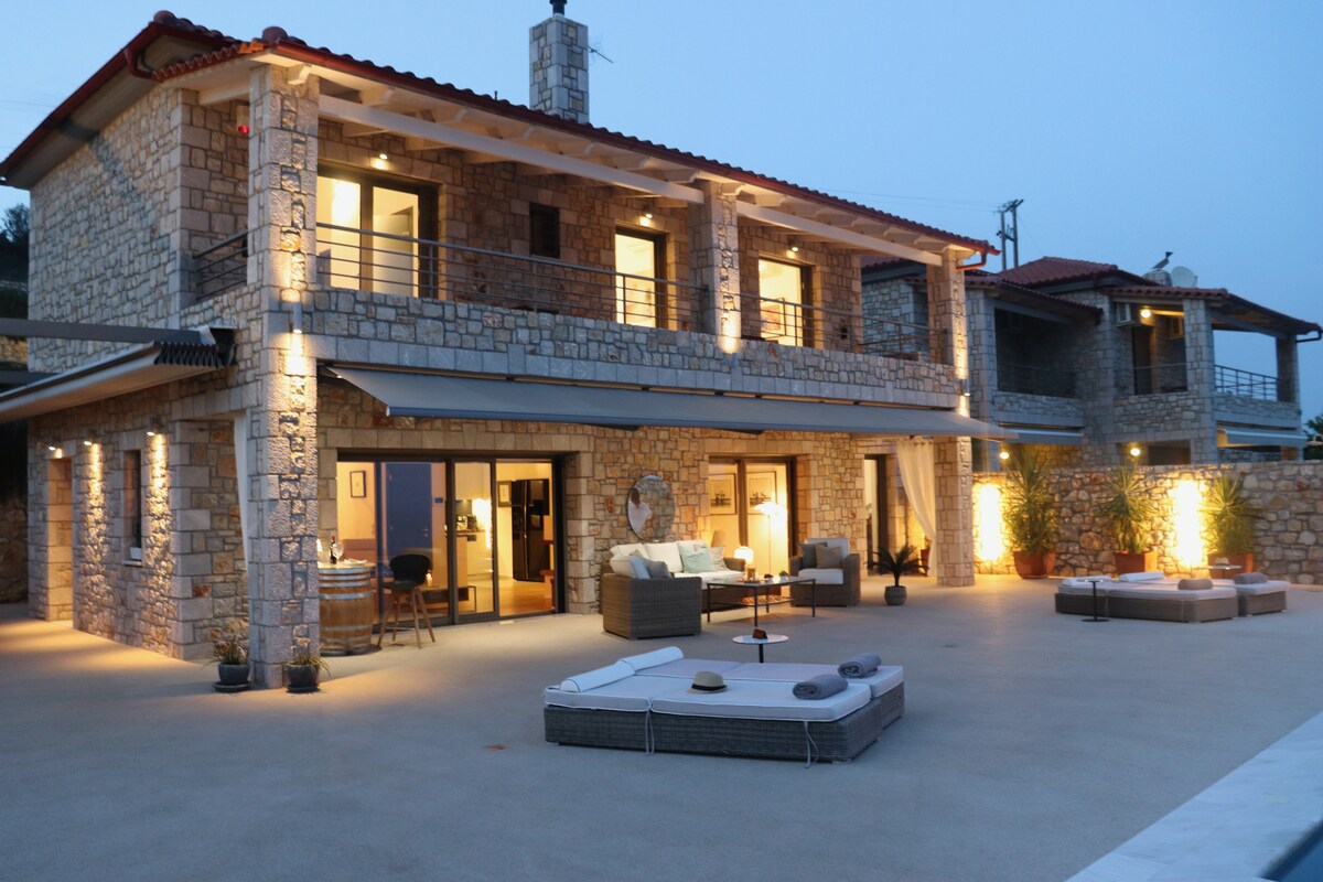 Beachfront Villa Panos with panoramic sea views