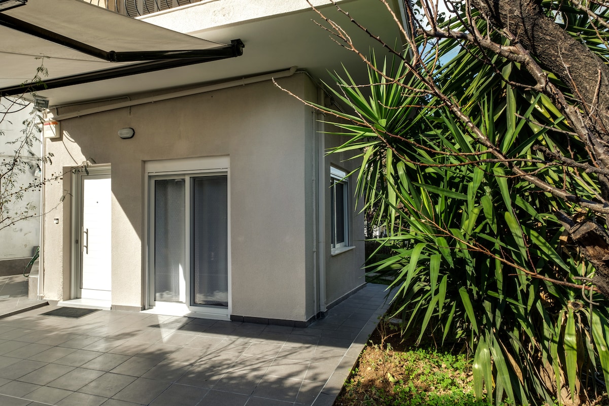 Modern and totally renovated ground floor apartment 34 m2 situated in a safe and peaceful suburb of Athens, with independent entrance, garden, fully equipped for a pleasant accommodation. Μοντέρνο πλήρως ανακαινισμένο ισόγειο διαμέρισμα 34 τ.μ. σε ένα ασφαλές και ήσυχο προάστιο της Αθήνας, με αυτόνομη είσοδο, κήπο, εξοπλισμένο για να καλύψει τις ανάγκες σας για μια ευχάριστη διαμονή.