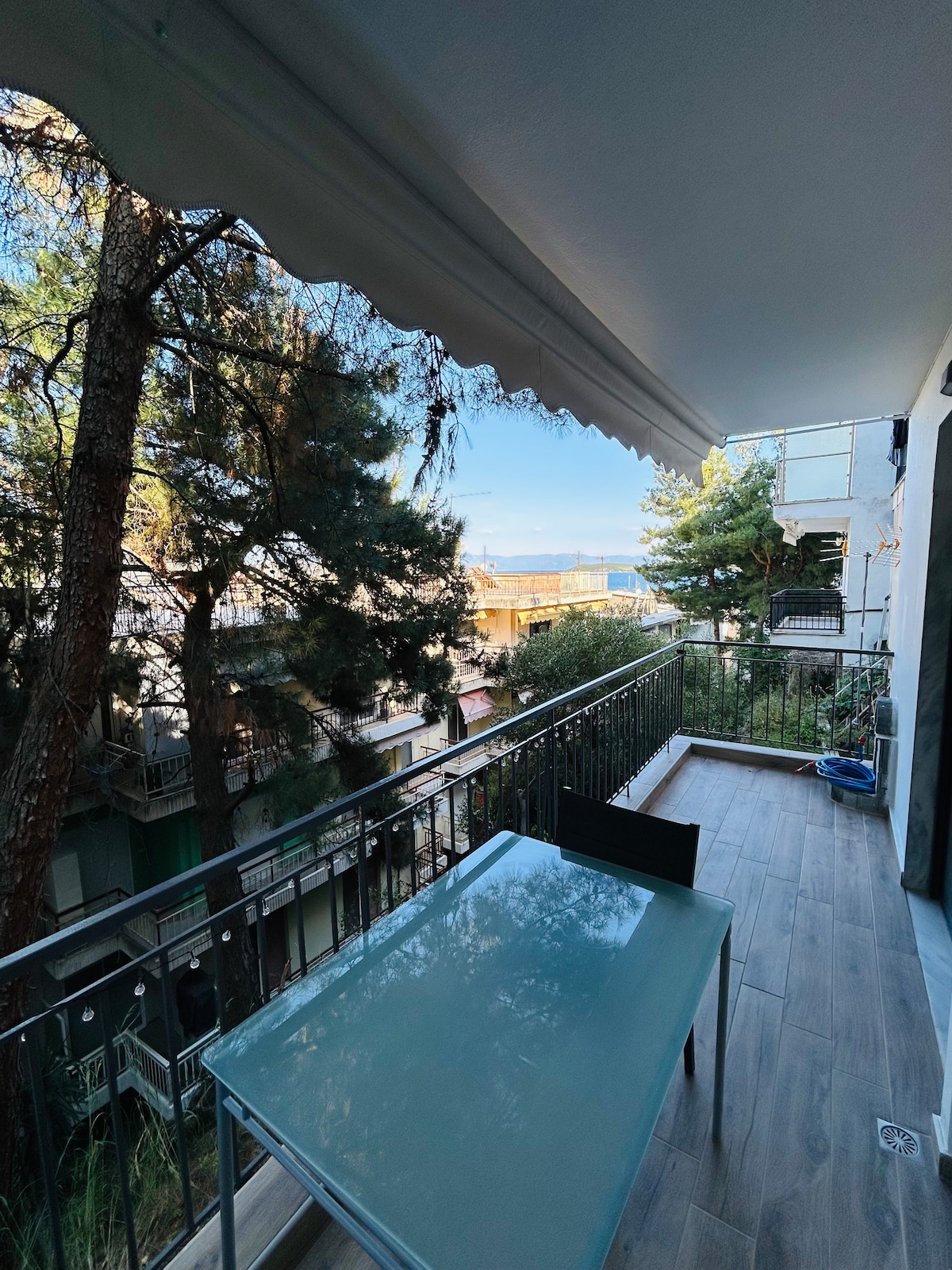 Appartement van 55 m², 2e verdieping met lift, hoek, op de voetgangersstraat van Nea Iraklitsa, tegenover de zee. Met uitzicht op de baai van Nea Irakleitsa (Blue Flag Award) en de pittoreske haven waar in de zomer plezierboten aanmeren. Om te zwemmen heb je geen auto nodig, alleen een handdoek! Op 350 m van supermarkt Masoutis en 1 km van supermarkt Lidl. Op 5 km van het bekende strand van Ammolofos met het karakteristieke fijne zand. Op 15 km ten westen van Kavala.