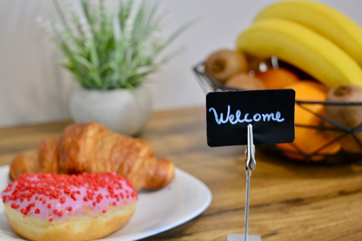 Dit unieke appartement is gelegen op de bovenste verdieping van een nieuw gebouw met een vrij uitzicht op Thessaloniki en biedt gratis parkeergelegenheid. Het appartement bevindt zich op de 6e verdieping en gasten hebben toegang via de lift. Afstand van het stadscentrum is ongeveer 4.000 Afstand tot de luchthaven is 15 km •voorzieningen zijn onder andere:2 smart-tv's (toegang tot Netflix, Disney+ enz., met behulp van je eigen account) •Nespresso-koffiezetapparaat •vaatwasser, wasmachine en droger •gratis parkeergelegenheid in het gebouw
