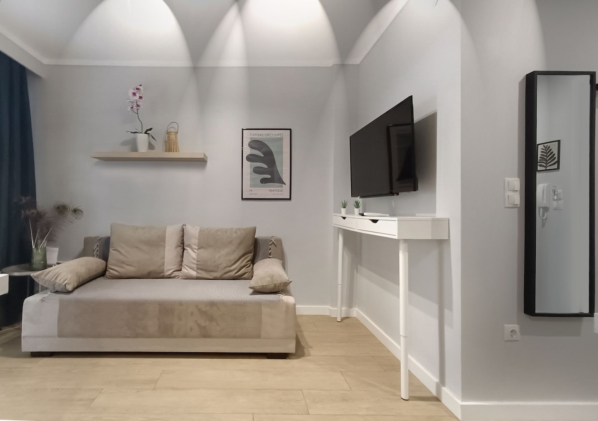 Uniek volledig uitgerust appartement met 1 slaapkamer op de zevende verdieping van een gerenoveerd gebouw uit 2020 met een adembenemend terrasbalkon. Snel internet, premium voorzieningen, een luxe queensize bed en je eigen Netflix-account zijn slechts een paar dingen die we je bieden. Licht, ruim, met alles wat je nodig hebt om van je verblijf in het hart van het sociale leven van Thessaloniki te genieten, op slechts 5 minuten afstand van het Aristotelische plein en op 2 minuten van de kust. Welkom en geniet van uw verblijf!
