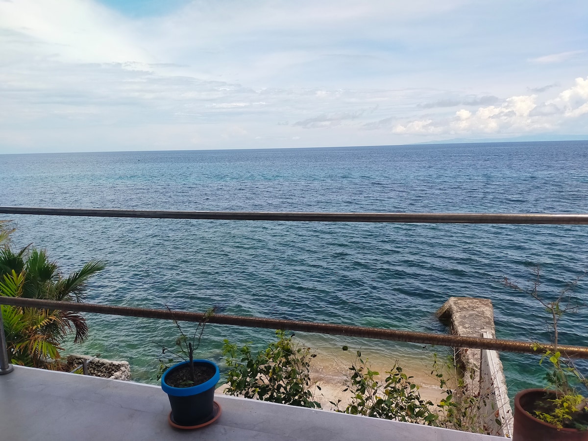 Combinatie van native en modern huisontwerp, goed verlicht, geventileerd en cool. Een wandeling van 3 minuten (150 m) naar een schoon grijs zandstrand met levende kleurrijke koraalriffen. Je moet wel slippers dragen, want er zijn genoeg rotsen. Ventilatoren zijn comfortabel genoeg omdat er veel bries uit zee komt en het pand is omgeven door bomen en planten. Ongeveer 25 minuten pendelen naar de stad met een jeepney of driewieler.