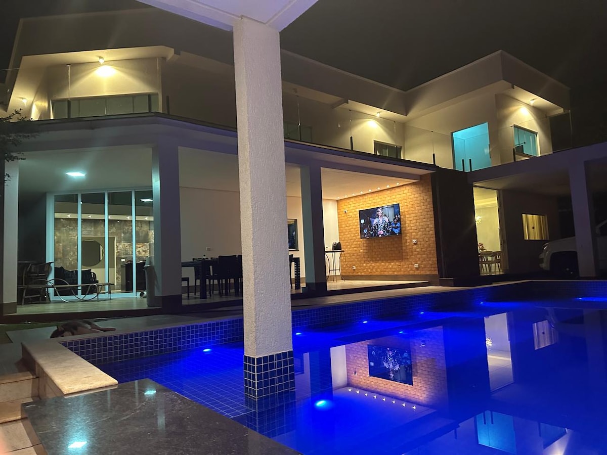 Ontspan met het hele gezin in deze comfortabele, rustige en veilige accommodatie. Vier speciale momenten, verwelkom vrienden en geniet van de ruimte die wordt gedacht en gepland voor je familie en vrienden. Het huis ligt op 20 minuten van de luchthaven en het centrum van Goiânia, met gemakkelijke toegang Het huis heeft: * 2 aparte suites, met bedden en badkamers, en airconditioning * Externe badkamer PCD * Verwarmd zwembad met hydromassage en waterval *Oven- en houtovenbarbecue *Keuken gemonteerd, met koelkast en fornuis