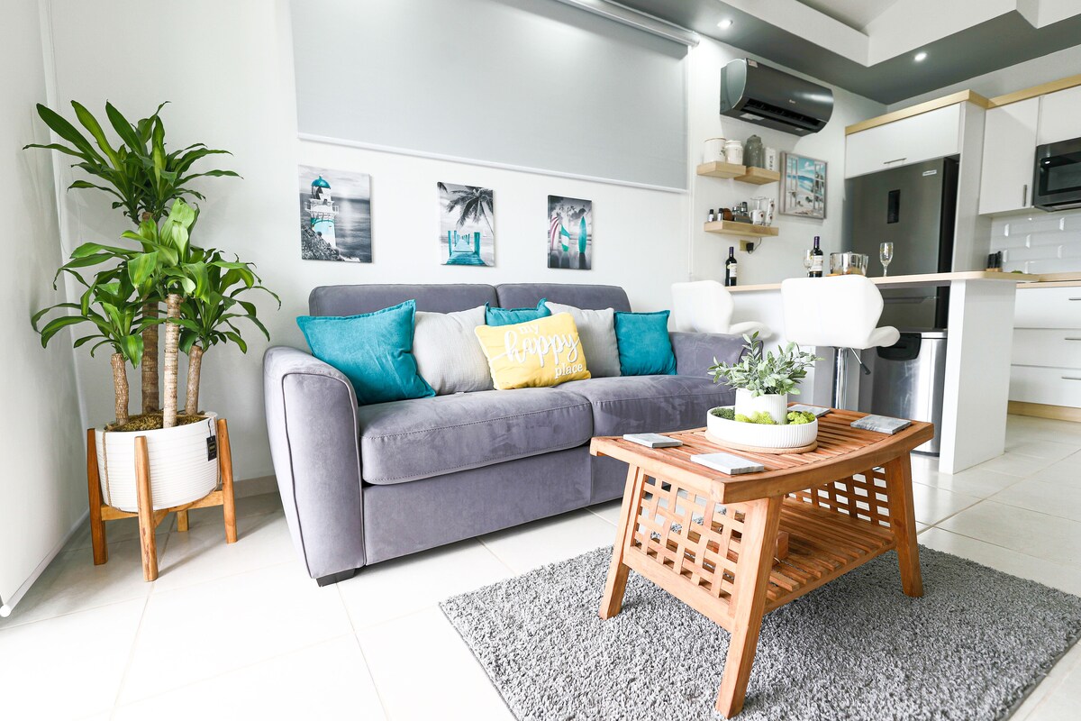 Are you looking for the ideal villa with private pool and just a 3 minute drive to the best beaches in the world? Don't look further and welcome to Blue Villa! Blue Villa is a 1500 sq. ft. modern home designed as the perfect vacation retreat. This 2 bedroom/2 bathroom villa with private pool and large garden is located only a 3 minute drive from Palm Beach and close to the best restaurants and casinos. Escaping cold weather for a longer period? Multiple months rent is also possible.
