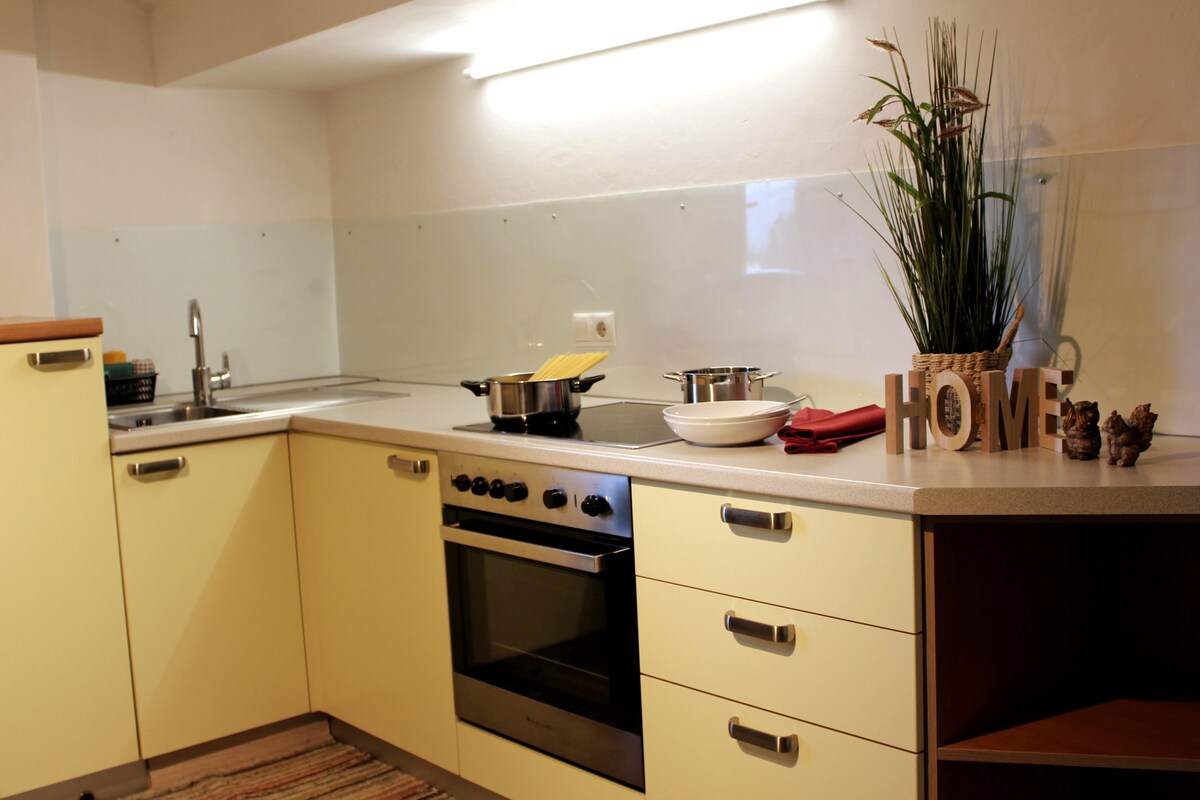 Vanuit deze centraal gelegen woning ben je zo op alle belangrijke plekken. De accommodatie ligt in de directe omgeving van het treinstation en de oude stad, niet ver van de kathedraal van Brixner, het apotheekmuseum en de kerstmarkt. Het appartement heeft een volledig uitgeruste keuken, twee slaapkamers, een ruime woonkamer, een grote badkamer met bad en een extra gastentoilet.