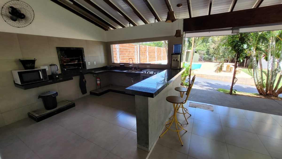 Chácara Canaã, een rustige ruimte voor gezinnen die uit de routine willen en willen rusten op een ruime plek, met groot zwembad, kiosk, mini-voetbalveld, 2 grills voor grote evenementen en een overdekte garage voor 4 auto's. Gemakkelijke toegang, aan de oevers van de snelweg SP-320 "Feliciano Sales Cunha". Een prachtig stadhuis, dat een ongelooflijk uitzicht op de accommodatie biedt. Het heeft 2 slaapkamers boven, waarvan een suite. Een grote woonkamer met 2 banken en 2 eenpersoonsmatrassen.
