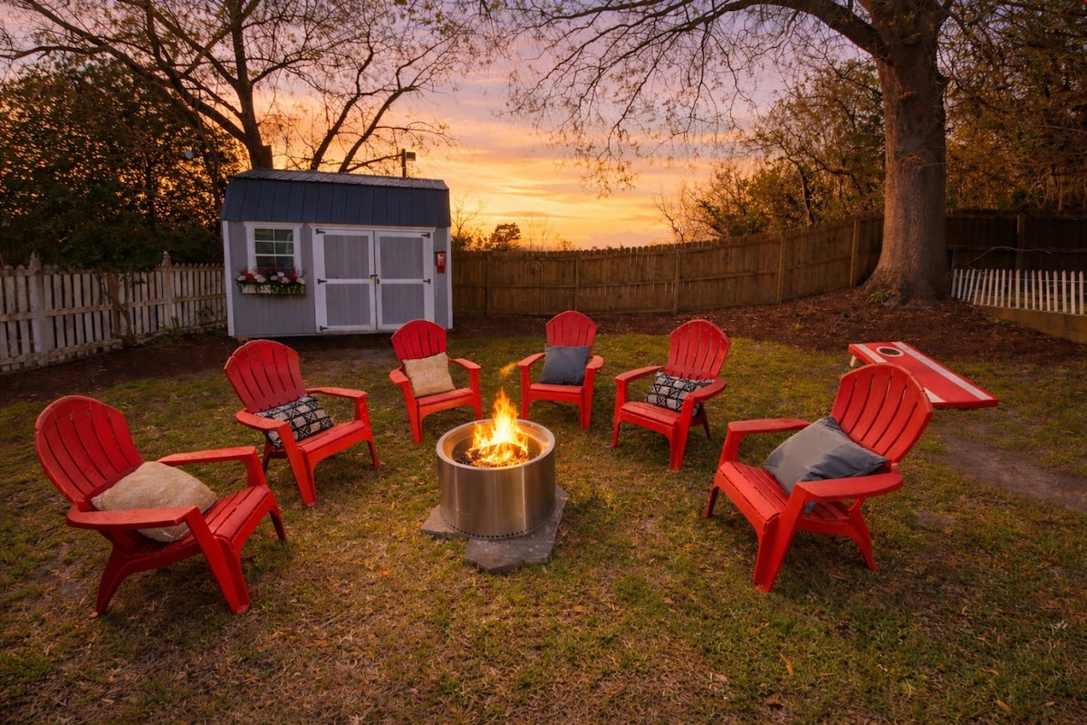 Virginia's Country Cottage, een charmant gastenverblijf gebouwd in 2020, genesteld op 40 hectare achter onze residentie. Geniet van je eigen privétuin en ontspan op de nieuwe buitenterras met een gashaard. Dit toevluchtsoord van 950 vierkante meter biedt rust in een afgelegen omgeving en toch dicht bij Western Blvd. Nabijgelegen voorzieningen zijn restaurants, supermarkten, een bioscoop, winkelcentrum en Walmart, waardoor het een ideale plek is voor diegenen die steden in onslow County bezoeken.