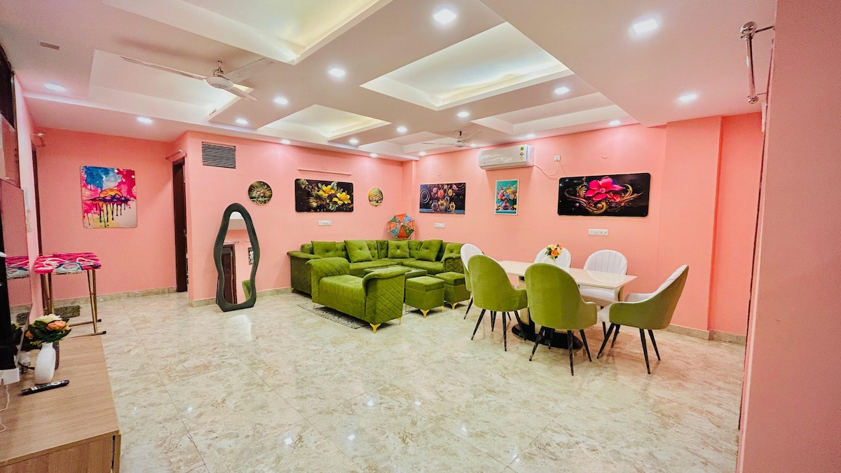 The Urban Nest D is een luxe appartement met 3 slaapkamers in een van de meest rustige buurten van Zuid-Delhi. Het ligt op de vierde verdieping met lifttoegang en beschikt over drie slaapkamers met eigen badkamer, een lichte woonkamer en een eigen balkon voor maximaal zes gasten. Geniet van een gratis ontbijt en conciërgeservice van 9.00 tot 18.00 uur. Dicht bij cafés zoals Starbucks, L'Opéra en La Seine, biedt het zowel gemak als rust.