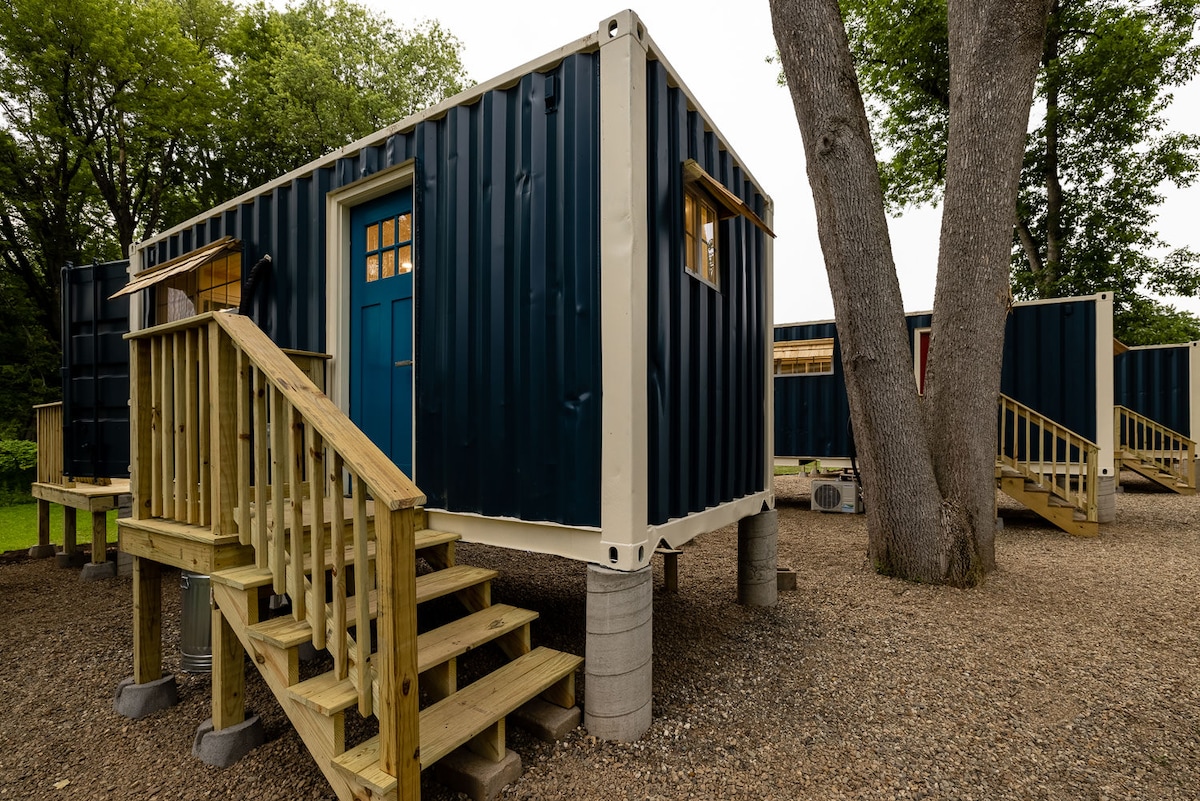 Een schilderachtige, gezellige en met zorg samengestelde Conex Box zeecontainer met uitzicht op de bergen. IG: @campstoweaway Ideaal voor een individu of een stel op een Vermont-uitje vol comfort, charme en karakter. Het meest geschikt voor volwassenen. Vijf minuten rijden naar Lower Village Stowe, 10 minuten naar de winkels en restaurants op Mountain Road en 15 minuten naar de parkeerplaats van het skigebied. Let op: de boerderij van de eigenaren ligt naast de deur en er is nog een Airbnb-eenheid op het terrein. Geen huisdieren.