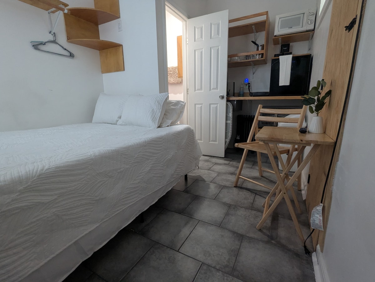 Clementine 's Room is een heerlijke schuilplaats in Mid City op Bayou St. John. Het is gewoon een slaapkamer/bad met tegel douche, wasmachine/droger, en kingsize bed. De deur is naast een prieel voor buitentijd en het bureau kan worden geregeld voor 2 personen om binnen te dineren. Er is een grote Roku-tv voor streaming shows, een minikoelkast, magnetron, waterkoker en koffietrechter voor het maken van 's ochtends koffie of thee, en servies en bestek voor het opwarmen van een snack. Ook kan het worden gecombineerd met onze Sweet Suite voor 2 bedden/2 badkamers familieboeking