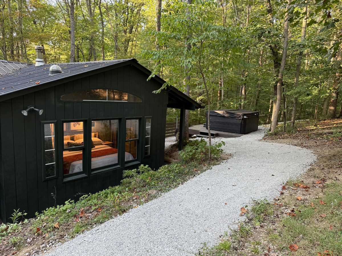 Welkom bij Kanso! Een Japans geïnspireerde hut waar moderne luxe de rust van de natuur ontmoet. Onze hut van 550 vierkante meter is ontworpen voor twee - een plek waar je kunt vertragen, diep kunt ademen en opnieuw kunt verbinden. Een slaapbank is beschikbaar voor een extra gast, maar de ruimte is op maat gemaakt voor een perfect toevluchtsoord voor koppels. Voel vanaf het moment dat je naar binnen stapt de warmte van de gladde kwarts aanrechtbladen, wegzakken in de zachte stoelen en adem de frisse boslucht in door de grote ramen.