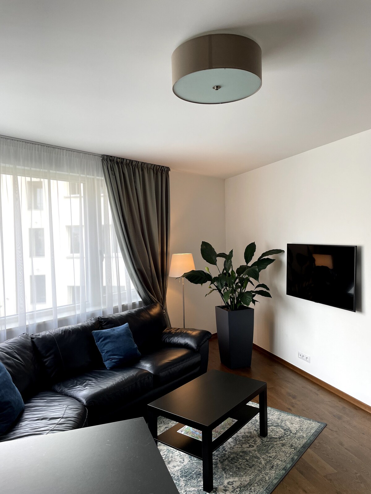 Ontbijt aan een design-bewuste tafel in een lichte keuken met knoestige houten vloeren en minimalistische bloeit. De ruimte met 95m ², hoge ramen overspoelen een levendige woonkamer in natuurlijk licht, waar een moderne bank de perfecte plek biedt om te krullen met een goed boek. Bovendien kun je 's nachts genieten van elk stukje van je slaap, omdat de plaats erg rustig is, ondanks de zeer centrale ligging. Ik hoop dat je mijn huis net zo leuk vindt als ik en je verblijf tot een heerlijke ervaring zult maken.