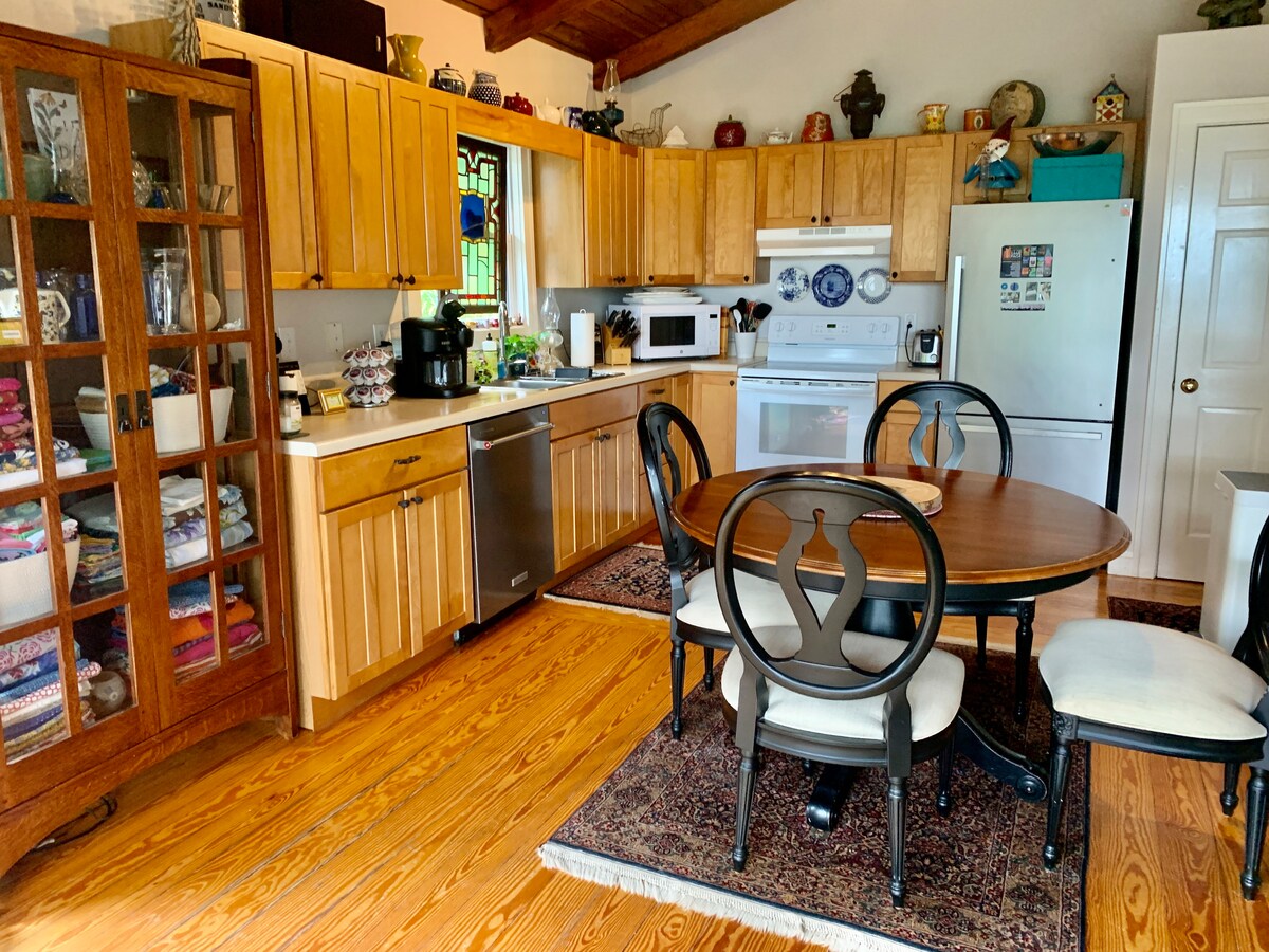 Cabin in the Clouds is a beautiful, one bedroom vacation home in a secluded, private community that's very quiet and has been renovated in 2023. The bathroom was completely remodeled, new living room furniture, new marble top dining room table, refurbished bedroom, new floors. There's a beautiful view from our porch that has deck furniture and propane grill. Inside is an open layout with open beam ceiling and pine paneling. Black Mountain is a quaint vacation town, you will love this place.