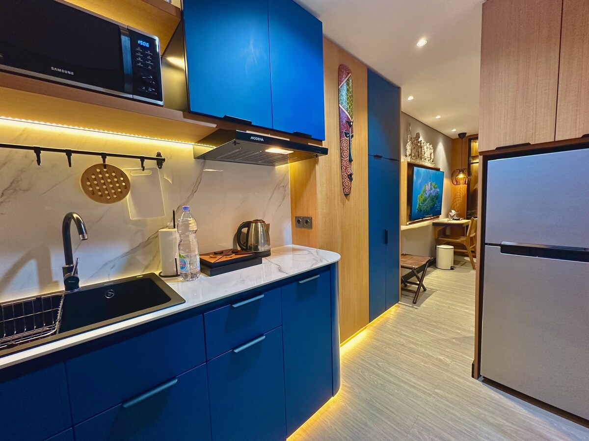 A villa with a private pool, and mezzanine design, featuring a sleeping area upstairs and a spacious living room with mini pantry downstairs. Accomodates up to 4 guest, with an extra bed option available. A connecting door is available to the next door villa of the same type. Located in a quiet yet strategic area, close to Yogyakarta’s popular attractions and culinary spots.