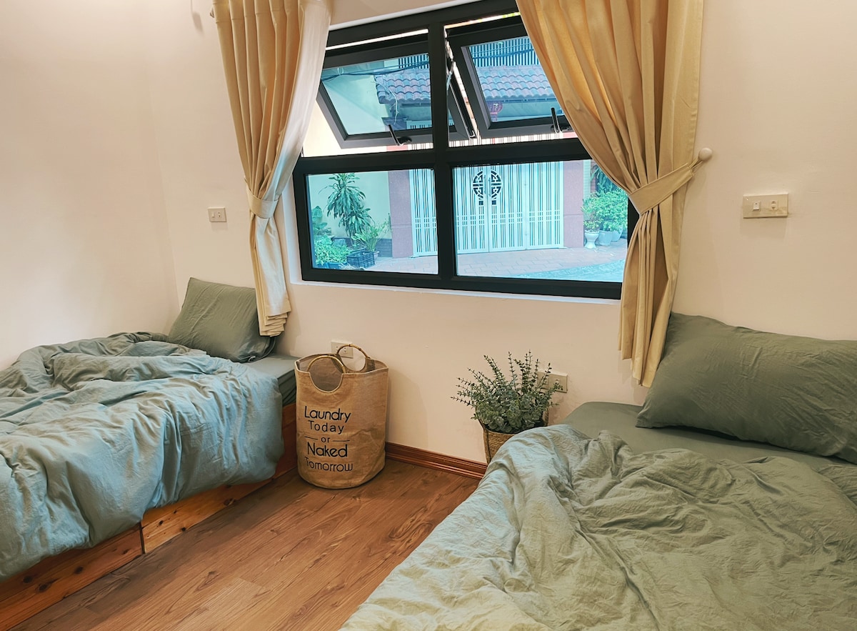 Het huis van mevrouw Zang ligt in het hart van de stad Thanh Hoa. Je kunt snel bij mijn huis komen met Grab/Taxi en een aantal van de beroemdste straateten in Thanh Hoa stad vinden. De straten beginnen de hele dag door te breken en blijven tot de nacht stil. 3 Aparte kamer met 4 tweepersoonsbedden, 3 toiletten, 1 volledig uitgeruste woonkamer, rustig schoon. - Er is een op zichzelf staande zoutstenen sauna in de kamer( gratis).