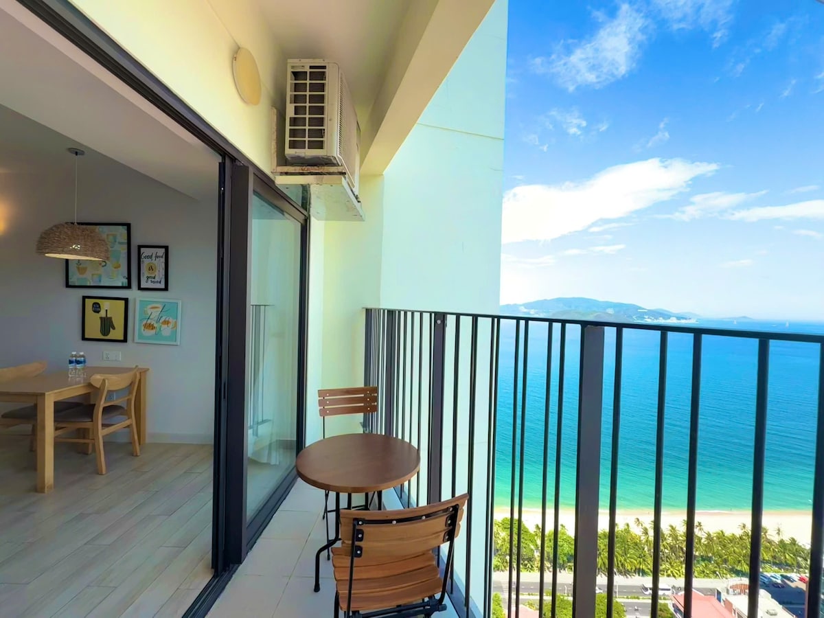 Een appartement met uitzicht op zee van 52 m2 dat is gelegen in het centrum van Nha Trang City en ligt bij de bushalte van de luchthaven. Dit appartement is binnen een modern gebouw met winkelcentrum en ligt op slechts 2 minuten lopen naar het strand, bioscopen, supermarkt, pubs, nachtmarkt, 5-sterren hotels zoals Intercontinental, Sheraton, Sunrise,.. We hebben volledige funiture en handig. Echt geweldig en geniet van je vakantie met echt goede lucht.