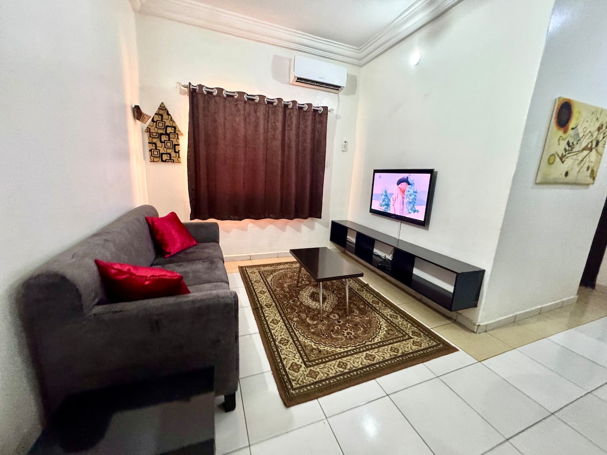 Dit prachtige en luxe service-appartement is zorgvuldig weggestopt van de stad, maar toch toegankelijk voor het stadscentrum. Het is centraal gelegen met alle exclusieve voorzieningen en voedingssysteem, zoals een geïnstalleerde omvormer en een generator die nooit faalt in het voeden van de koelunit 12 uur per dag. wij bieden wasservice tegen betaling, maar strijken is gratis. het ligt op tien minuten afstand van plekken zoals het winkelcentrum Novare, waar je Genesis Cinema, Shoprite, spa, kapperszaak,restaurant,enz. vindt.