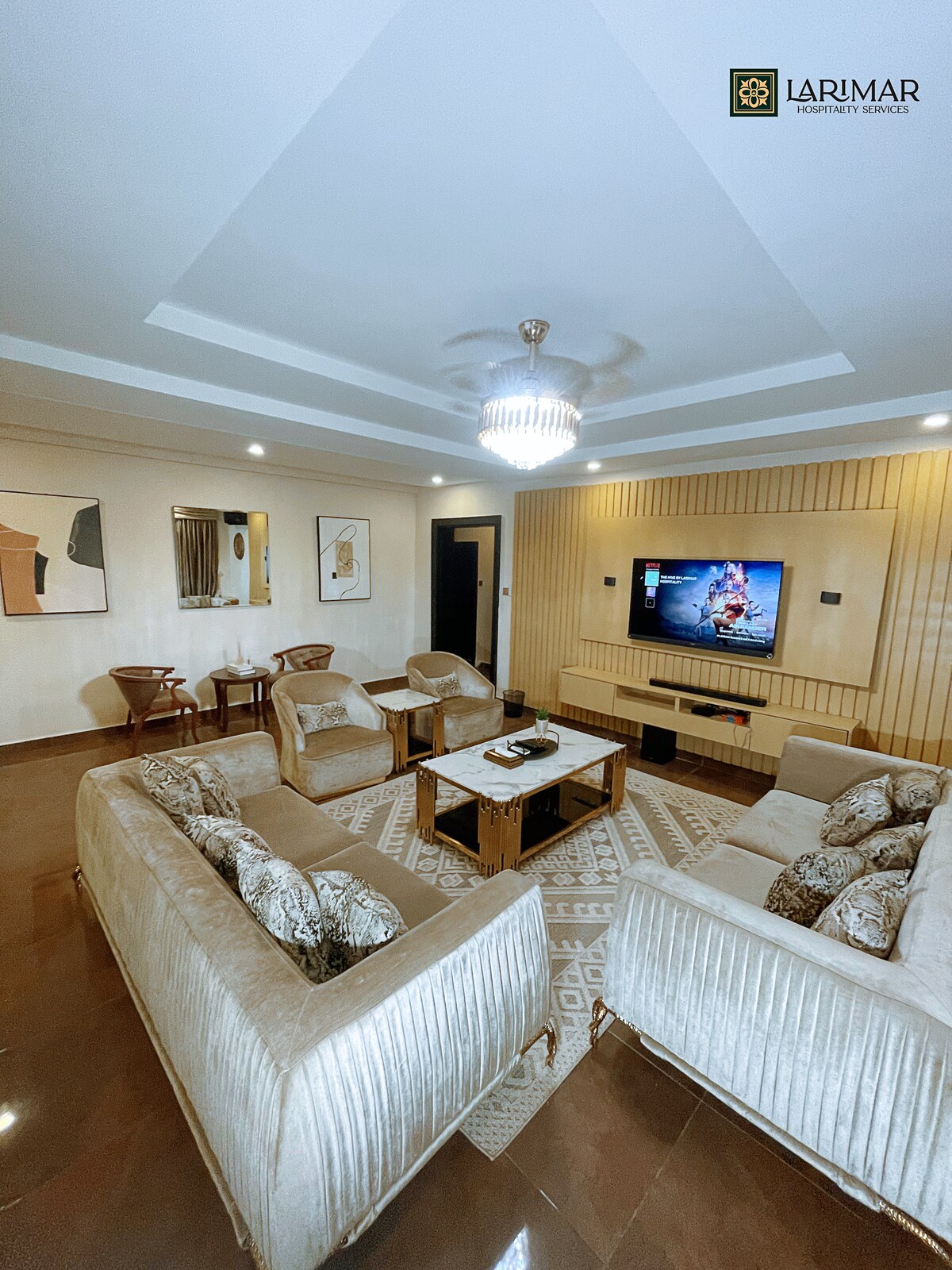 Ophalen/afzetten op de luchthaven, dagelijkse chauffeursdiensten tegen een vergoeding. Royalty Luxury Serviced Apartment is ingericht en ontworpen als een thuis voor Royals. Het is rustig, uniek, stijlvol en huiselijk met prachtige meubels om een gevoel van een comfortabel huis te geven. Gelegen in een serene beveiligde omheinde woning met gemakkelijke toegang tot alle delen van Abj. 247 elektriciteit met zonne-/omvormersystemen, glasvezelwifi, ventilator, volledig uitgeruste moderne keuken, gewapende beveiliging. Pooltafel, relaxschommel, zwembad en wasmachine