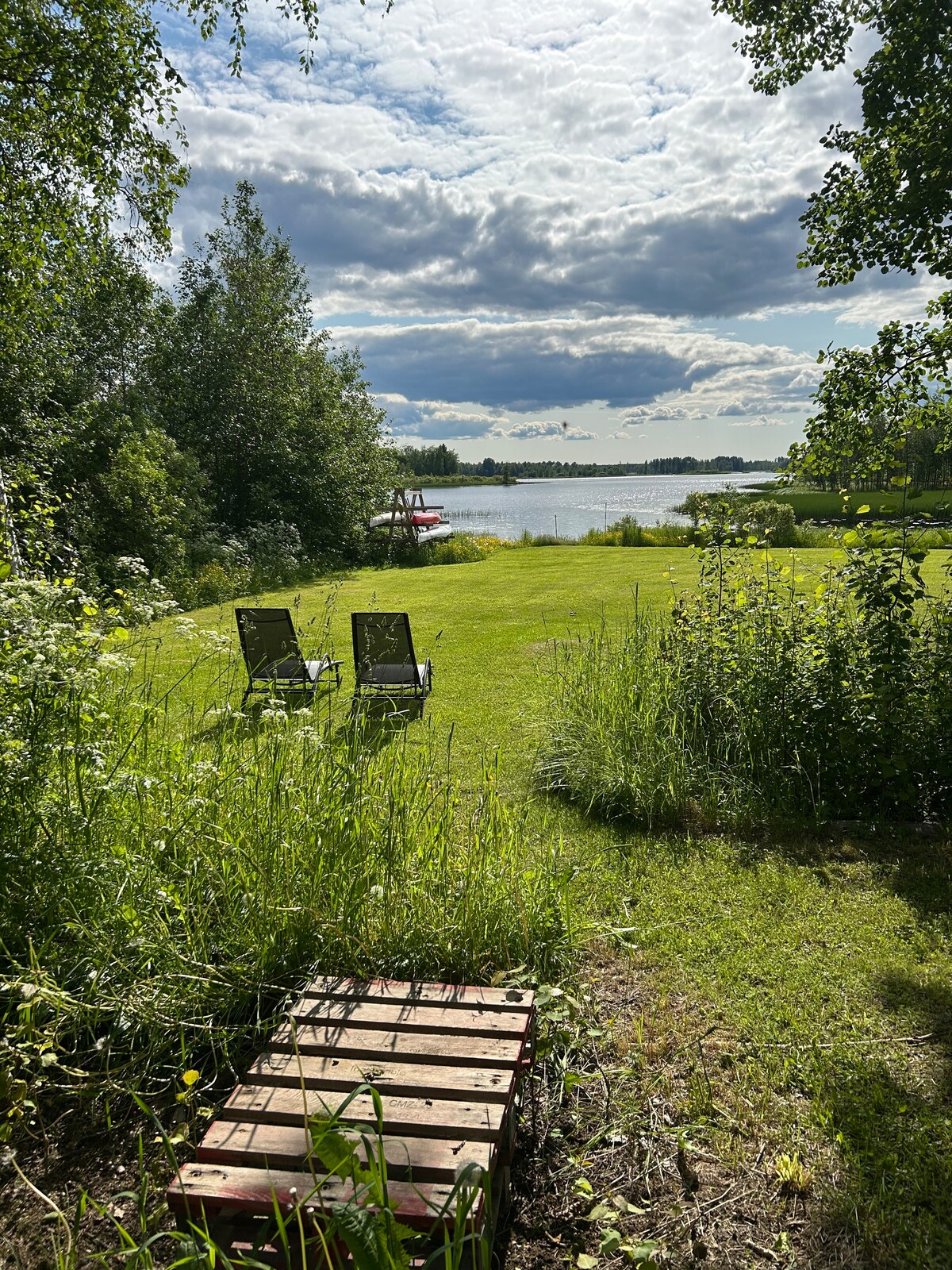 Appartement 140 vierkante meter, grote keuken, 2 toiletten, 2 douches, 2 flatscreen-tv's, snelle internetverbindingen, elektrische auto opladen, strandsauna en strand 100 m, groot gemeubileerd balkon, slaapkamer 1 tweepersoonsbed, open haard, slaapkamer 2 tweepersoonsbedden, slaapkamer 3 smalle bedden, kinderbed, slaaphoek 2 keer 90 cm, kinderslaapbank. Grote keuken met apparatuur, bakoven, verhuur. K-Kauppa, apotheek, verse groenten en lokale winkels ongeveer 800 m. Kano's/kajaks/aanbouw/barbecue/beschikbaar. Minstens twee dagen